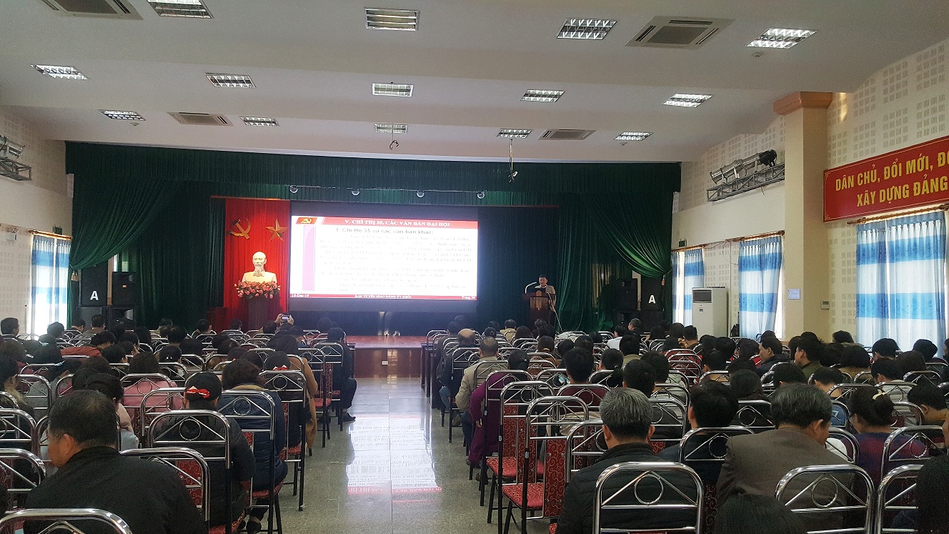 Hội nghị đã được nghe đồng chí Lê Văn Vinh – Ủy viên Ban Thường vụ – Trưởng Ban Tuyên giáo Đảng ủy Khối các cơ quan tỉnh Thanh Hóa truyền đạt các nội dung. Cụ thể, bao gồm các Nghị quyết của Bộ Chính trị: Nghị quyết số 52-NQ/TW ngày 27/9/2019 Về một số chủ trương, chính sách chủ động tham gia cuộc Cách mạng công nghiệp lần thứ tư; Chỉ thị số 35-CT/TW ngày 30/5/2019 về đại hội đảng bộ các cấp tiến tới Đại hội đại biểu toàn quốc lần thứ XIII của Đảng; Chỉ thị số 36-CT/TW Ngày 16/8/2019 của Bộ Chính trị về tăng cường, nâng cao hiệu quả công tác phòng, chống và kiểm soát ma túy; Các Kết luận của Bộ Chính trị: Kết luận số 37-CT/TW ngày 03/9/2019 của Ban Bí thư về tăng cường sự lãnh đạo, chỉ đạo xây dựng quan hệ lao động hài hòa, ổn định và tiến bộ trong tình hình mới và Kết luận số 38-CT/TW của Ban Bí thư Trung ương Đảng (Khóa XIII) ngày 19/9/2019 về tiếp tục đổi mới, phát huy vai trò và nâng cao chất lượng, hiệu quả hoạt động của Liên hiệp các tổ chức hữu nghị Việt Nam trong tình hình mới.