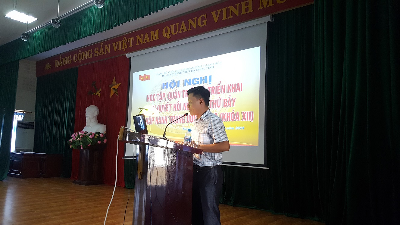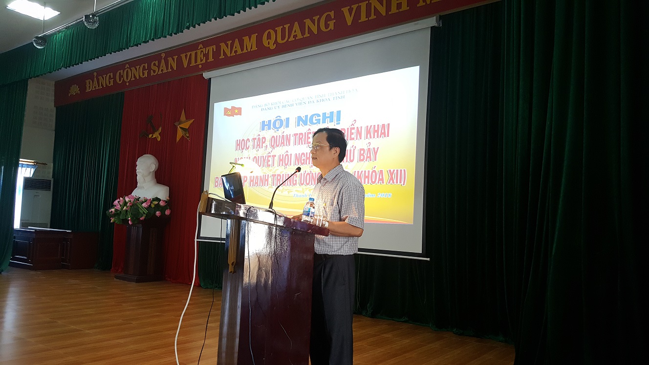 Chiều ngày 02/8/2018, Đảng ủy Bệnh viện Đa khoa tỉnh Thanh Hóa đã tổ chức Hội nghị Hội nghị học tập, quán triệt và triển khai thực hiện Nghị quyết Hội nghị lần thứ bảy Ban chấp hành trung ương Đảng (Khóa XII). Tham dự Hội nghị, về phía Đảng ủy Khối các cơ quan tỉnh Thanh Hóa có đồng chí Lê Văn Vinh – Ủy viên Ban Thường vụ, Trưởng Ban Tuyên giáo Đảng ủy Khối; về phía Bệnh viện có các đồng chí trong Ban chấp hành Đảng ủy, Ban Giám đốc Bệnh viện, đại diện các tổ chức đoàn thể, chính trị – xã hội và toàn thể đảng viên, cán bộ có trình độ đại học trở lên tham dự.