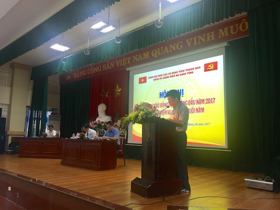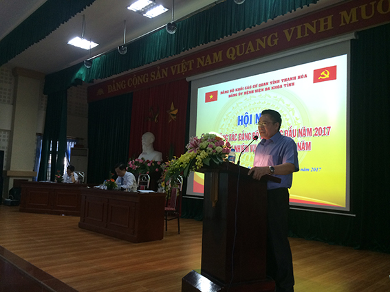 Ngày 29/6/2017, Đảng bộ Bệnh viện Đa khoa tỉnh Thanh Hóa đã tổ chức Hội nghị sơ kết công tác đảng bộ 6 tháng đầu năm và triển khai phương hướng, nhiệm vụ 6 tháng cuối năm 2017. Đến dự và chỉ đạo Hội nghị có đồng chí Đỗ Xuân Phong – Phó Bí thư Thường trực và các đồng chí trong BCH Đảng bộ khối các cơ quan tỉnh Thanh Hóa; Về phía Đảng bộ Bệnh viện, có các đồng chí Ủy viên Ban thường vụ, Ban Chấp hành Đảng bộ cùng toàn thể đảng viên chính thức của Đảng bộ Bệnh viện.