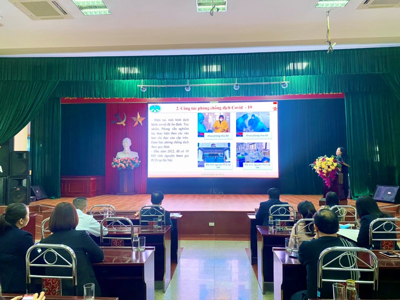 Về công tác phòng chống dịch, ngay từ những tháng đầu năm 2022 khi dịch bệnh bùng phát mạnh, nhiều Điều dưỡng, KTV trong Bệnh viện đã hăng hái xung phong tham gia hỗ trợ y tế cho các tỉnh và ở lại Bệnh viện thực hiện nhiệm vụ “Khoa, phòng tách đôi” kịp thời thu dung, điều trị và quản lý bệnh nhân mắc COVID-19 có các bệnh lý nền, chuyên khoa kèm theo, vừa đảm bảo Bệnh viện an toàn phòng chống dịch vừa phát triển chuyên môn kỹ thuật.
