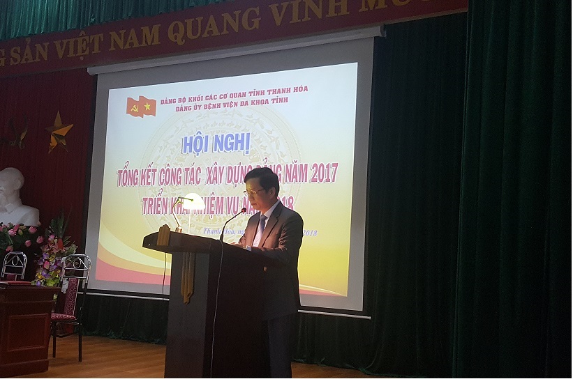 Ngày 02/01/2018, Đảng bộ Bệnh viện Đa khoa tỉnh Thanh Hóa đã tổ chức Hội nghị Tổng kết công tác xây dựng Đảng bộ năm 2017 và triển khai nhiệm vụ năm 2018. Đến dự và chỉ đạo Hội nghị có đồng chí Đinh Thị Thanh Hà – Phó Bí thư và các đồng chí trong BCH Đảng bộ khối các cơ quan tỉnh Thanh Hóa; Về phía Đảng bộ Bệnh viện, có các đồng chí Ủy viên Ban thường vụ, Ban Chấp hành Đảng bộ cùng toàn thể đảng viên chính thức của Đảng bộ Bệnh viện.