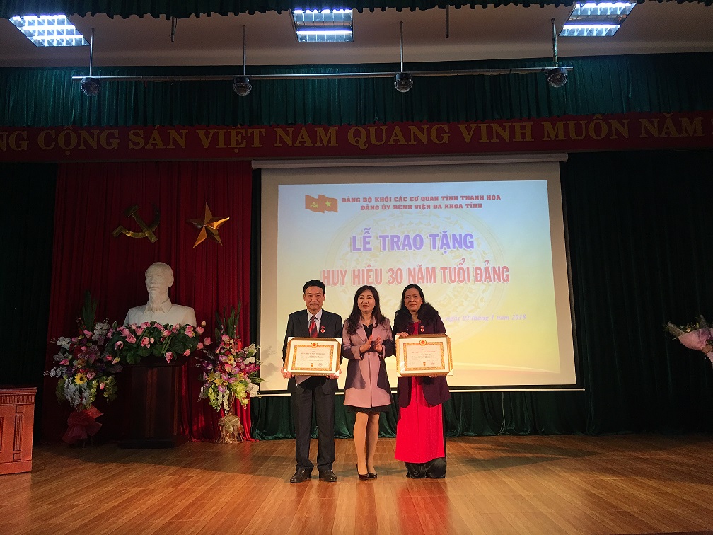 Nhân dịp này, Đảng bộ Bệnh viện cũng đã tổ chức Lễ trao huy hiệu 30 năm tuổi Đảng cho đồng chí Trịnh Ngọc Lâm – Chi bộ khoa Gây mê hồi sức và đồng chí Nguyễn Thị Quang – Chi bộ khoa Dược.
