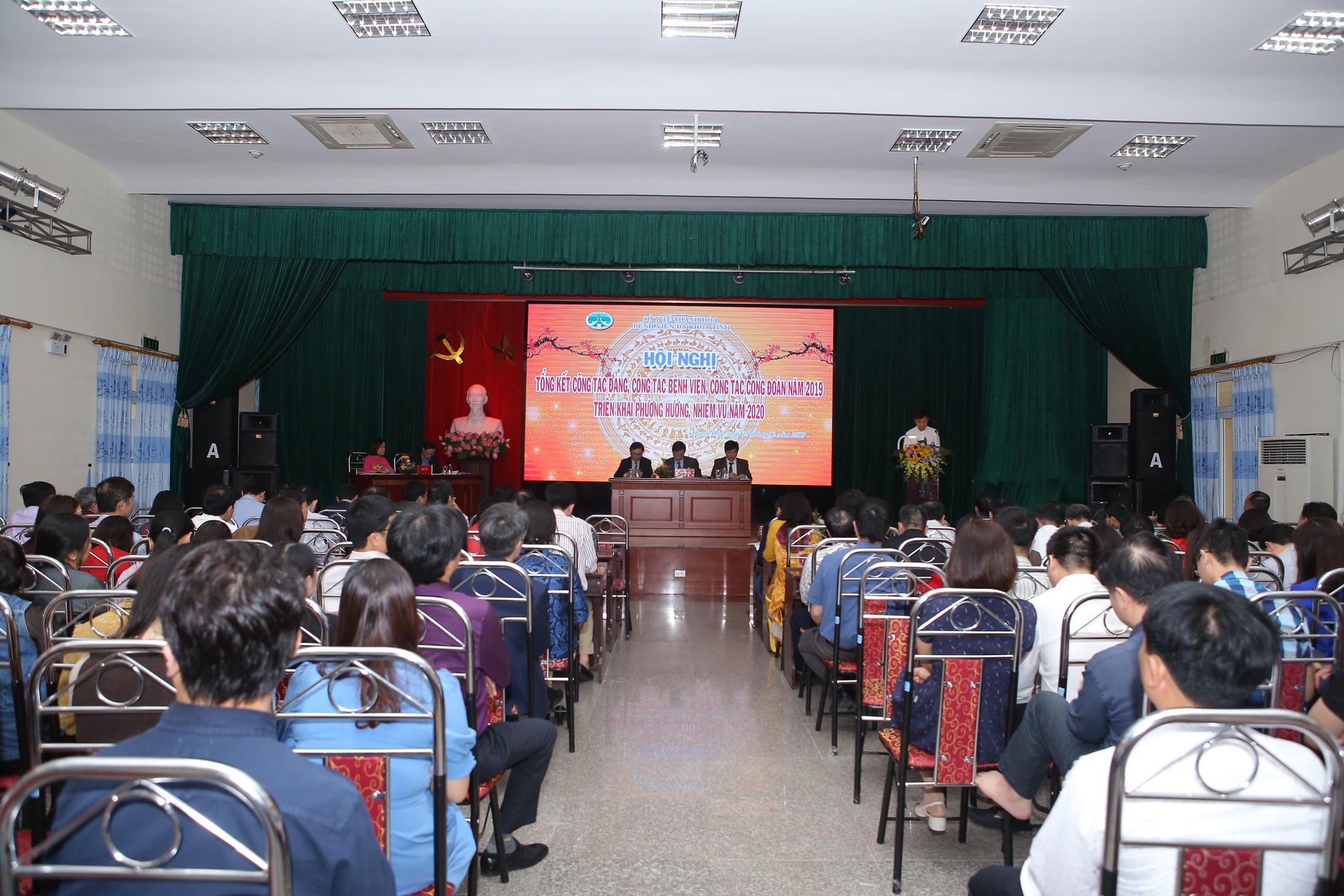 Hội nghị đã nghe báo cáo kết quả hoạt động công tác xây dựng Đảng, công tác Bệnh viện, công tác Công đoàn năm 2019 và phương hướng nhiệm vụ năm 2020 do Tiến sĩ Lê Văn Cường – Ủy viên BTV Đảng ủy, Phó Giám đốc Bệnh viện trình bày. Trong năm 2019, được sự quan tâm, chỉ đạo Tỉnh ủy, HĐND tỉnh, UBND tỉnh, Sở Y tế Thanh Hóa, với sự quyết liệt trong công tác chỉ đạo, điều hành của Ban Thường vụ Đảng ủy, Ban Giám đốc Bệnh viện, các tổ chức đoàn thể chính trị – xã hội, toàn thể cán bộ, viên chức, người lao động Bệnh viện đã nổ lực triển khai đồng bộ và hiệu quả các nhiệm vụ, giải pháp. Bệnh viện hoạt động ổn định và tiếp tục phát triển, đáp ứng nhu cầu khám bệnh, chữa bệnh của nhân dân, góp phần đảm bảo an sinh xã hội, các chỉ tiêu kế hoạch đều đạt và vượt mức đề ra. Bệnh viện đã tập trung mọi nguồn lực thực hiện tốt công tác khám chữa bệnh, Bệnh viện đã khám cho 211.191lượt bệnh nhân ngoại trú (tăng 8%); số ngày điều trị trung bình là 6.78 ngày, giảm 0.22 ngày so với năm 2018; tổng số chuyển tuyến trên giảm 1% so với năm 2018. Bệnh viện đã triển khai được nhiều kỹ thuật mới, đặc biệt có một số kỹ thuật hiện đại như: Ứng dụng robot 1 cánh tay vào phẫu thuật nội soi tiết niệu, tán sỏi đường mật qua da, đặt coil điều trị phình động mạch não… Bệnh viện cũng có nhiều bước đột phá trong ứng dụng CNTT trong khám chữa bệnh: triển khai sử dụng hóa đơn điện tử, kết nối liên thông dữ liệu 2 chiều giữa phần mềm HIS-LIS. Đặc biệt, thực hiện 02 Nghị quyết chuyên đề của Đảng ủy Bệnh viện về “Tăng cường các giải pháp cải thiện chất lượng Bệnh viện” và “Tăng cường các giải pháp kiểm soát nhiễm khuẩn Bệnh viện, giảm tỷ lệ sử dụng kháng sinh”. Theo đó, Bệnh viện đã thực hiện đồng bộ nhiều giải pháp nhằm nâng cao chất lượng Bệnh viện: trang bị thêm các loại biển báo trong khuôn viên, tại các khu khám bệnh, mua sắm trang thiết bị y tế phục vụ khám chữa bệnh (hệ thống máy CT 32 lát cắt…), phòng xét nghiệm các khoa Hóa sinh, Vi sinh và Trung tâm Huyết học và Truyền máu đạt tiêu chuẩn quốc tế ISO 15189:2012, giảm tỷ lệ nhiễm khuẩn vết mổ (giảm 38,2% so với năm 2018), chi phí sử dụng kháng sinh giảm hơn so với năm 2018 là 05 tỷ đồng…Năm 2019, Bệnh viện cũng thực hiện 24 Hợp đồng khám sức khỏe cho 3.000 người ở các cơ quan, đơn vị trong tỉnh, trong đó có nhiều Hợp đồng có giá trị cao với số lượng tham dự lớn như Ngân hàng Chính sách Thanh Hóa, Công ty Xi măng Bỉm Sơn, Ngân hàng Vietcombank…