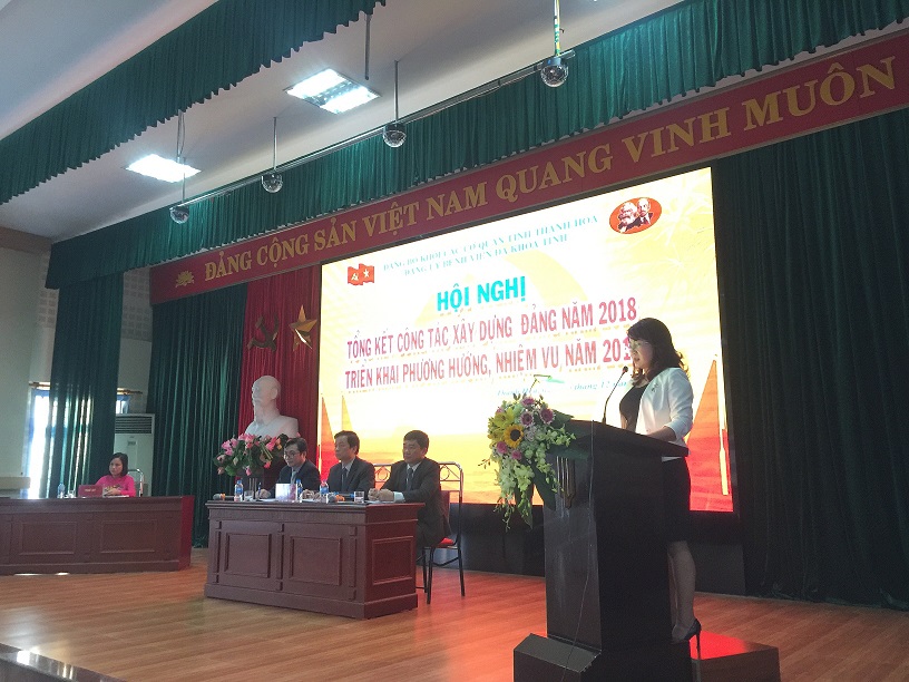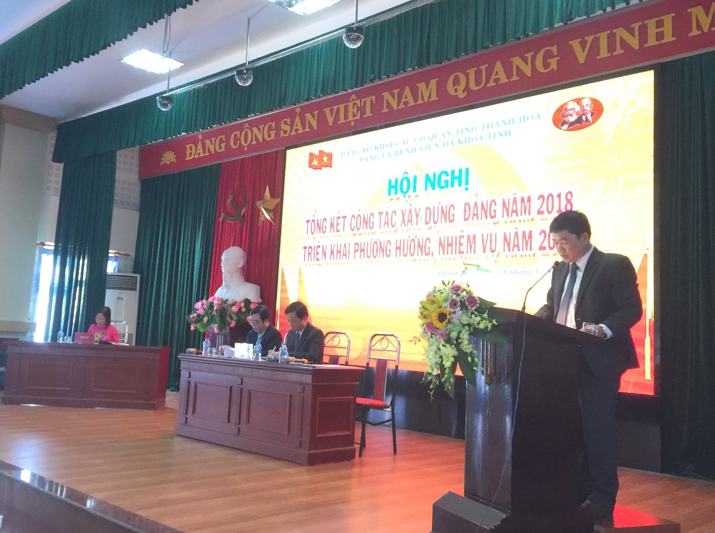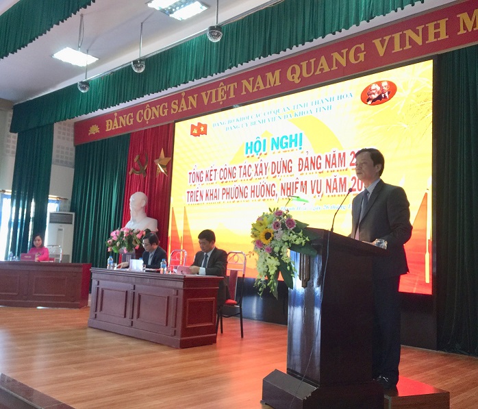 Thực hiện hướng dẫn số 26-HD/ĐUK ngày 29/11/2018 của Đảng ủy Khối các cơ quan tỉnh Thanh Hóa về hướng dẫn xếp loại chất lượng Tổ chức cơ sở Đảng, đảng viên và tổng kết công tác xây dựng đảng, công tác thi đua khen thưởng năm 2018 và triển khai phương hướng, nhiệm vụ năm 2019, chiều ngày 26/12/2018, Đảng bộ Bệnh viện Đa khoa tỉnh Thanh Hóa đã tổ chức Hội nghị tổng kết công tác xây dựng Đảng năm 2018, triển khai phương hướng, nhiệm vụ năm 2019.