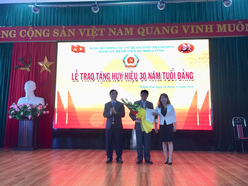 Nhân dịp này, Đảng bộ Bệnh viện cũng đã tổ chức Lễ trao tặng huy hiệu 30 năm tuổi Đảng cho đồng chí Lê Đình Quang – Chi bộ khoa Dược.
