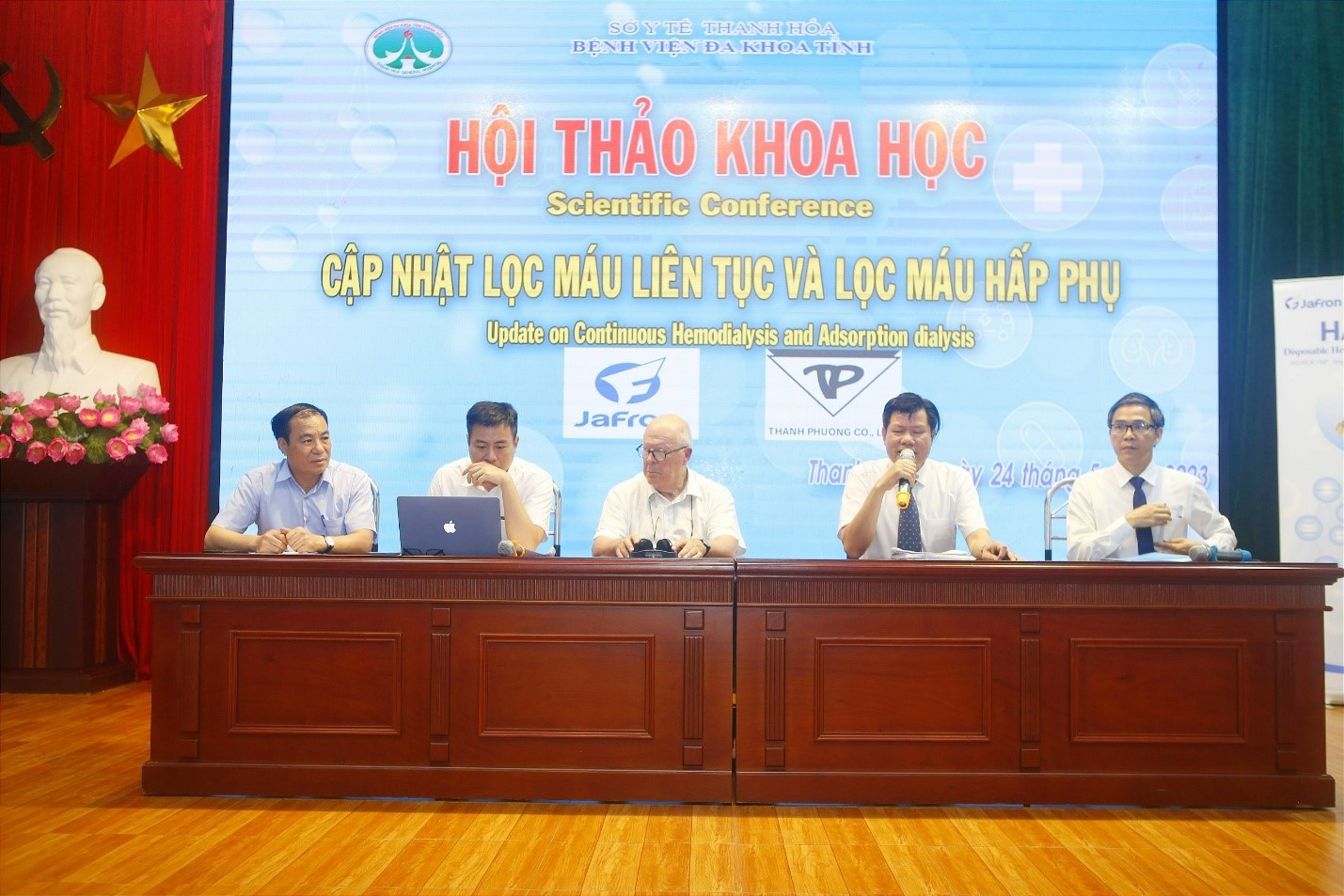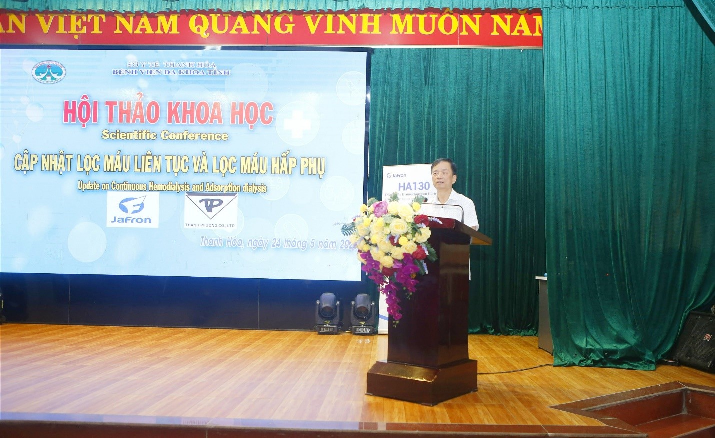 Phát biểu khai mạc Hội thảo, TTND, BSCKII Lê Văn Sỹ, Giám đốc Bệnh viện Đa khoa tỉnh Thanh Hóa cho biết: Trung tâm Thận – Lọc máu, Bệnh viện Đa khoa tỉnh Thanh Hóa được thành lập từ năm 1994. Hiện đang quản lý và điều trị cho gần 500 bệnh nhân chạy thận chu kỳ, với hơn 80 máy thận nhân tạo, làm việc theo 3 ca, bảo đảm lọc máu cho 230 lượt bệnh nhân/ngày. Ngoài lọc máu chu kỳ cho bệnh nhân suy thận mạn, Trung tâm Thận – Lọc máu còn thực hiện các kỹ thuật: Thẩm tách siêu lọc HDF online; lọc máu hấp phụ cho bệnh nhân ngộ độc cấp, bệnh nhân suy thận mạn; đặt catheter tĩnh mạch trung tâm…