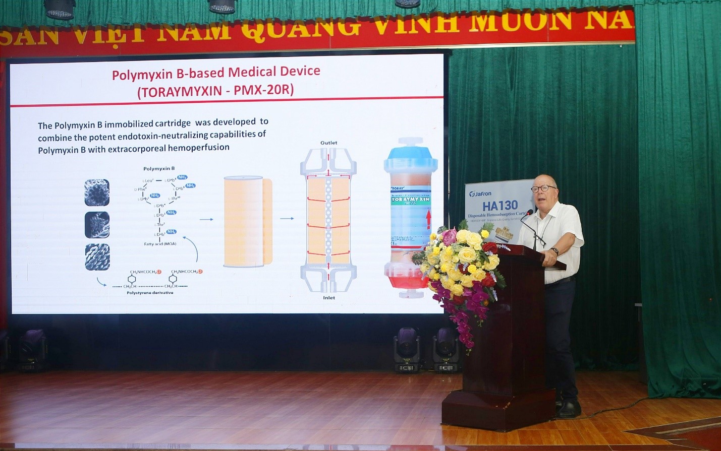 Trong khuôn khổ chương trình, các đại biểu tham dự hội thảo được nghe 3 bài báo cáo chất lượng của các chuyên gia đầu ngành trong nước và quốc tế đang được các y bác sĩ trong lĩnh vực thận nhân tạo, lọc máu, hồi sức tích cực quan tâm: “Tình hình lọc máu tại Bệnh viện Đa khoa tỉnh Thanh Hóa” do BSCKII. Đặng Thế Đạt – Giám đốc Trung tâm Thận lọc máu, Bệnh viện Đa khoa tỉnh Thanh Hóa trình bày; “Đề xuất chỉ định kỹ thuật phối hợp TNT và hấp phụ máu bằng quả hấp phụ HA130” do Ts.Bs. Nguyễn Hữu Dũng – Khoa Thận nhân tạo, Bệnh viện Bạch Mai trình bày. “Ứng dụng công nghệ hấp phụ trong các lọc máu” do GS.TS Claudio Ronco – Giám đốc Viện Nghiên cứu Thận Quốc tế Vincenza trình bày.