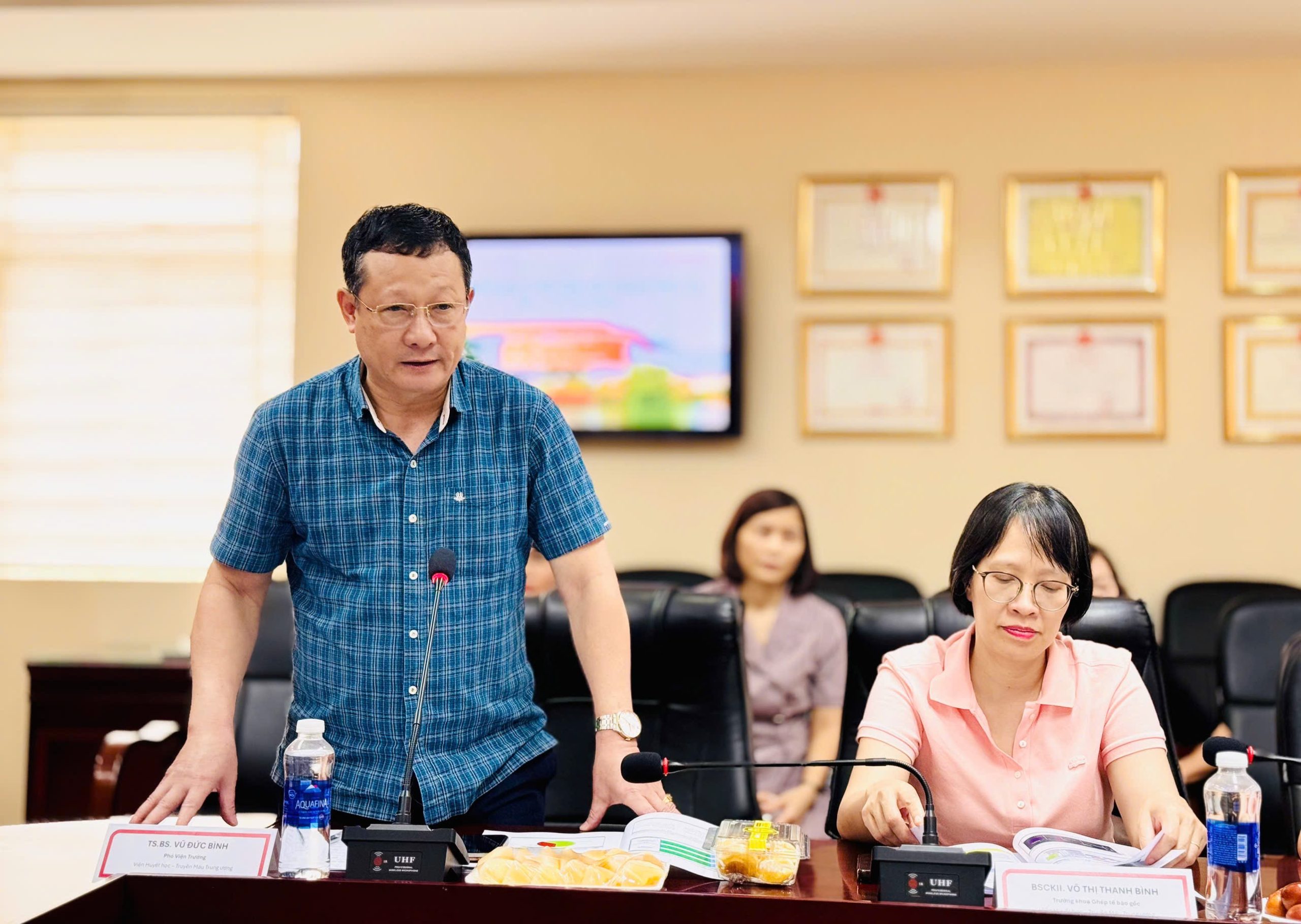 Phát biểu bế mạc hội thảo, TS.BS. Vũ Đức Bình tổng kết, đánh giá cao sự phối hợp giữa hai đơn vị và nhấn mạnh ý nghĩa thiết thực của hội thảo lần này.
