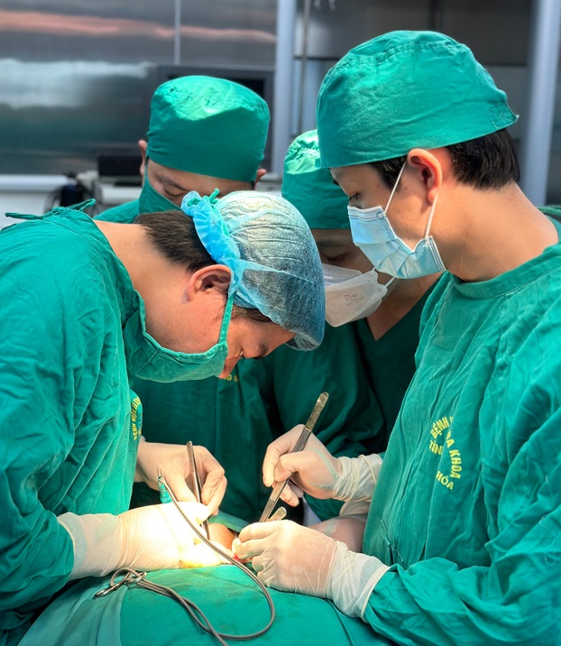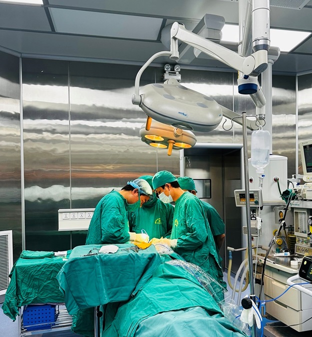 Các Bác sĩ đang thực hiện ca phẫu thuật cắt toàn bộ tuyến giáp bảo tồn dây thần kinh thanh quản bằng dao siêu âm cho bệnh nhân