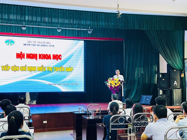 Nhằm nâng cao năng lực chẩn đoán, điều trị và phẫu thuật các bệnh lý tuyến giáp, chiều 10/11/2022, Bệnh viện Đa khoa tỉnh Thanh Hóa đã tổ chức Hội thảo khoa học: “Tiếp cận chỉ định điều trị tuyến giáp” cho toàn ngành y tế. Hội thảo có sự tham dự của hơn 200 Bác sĩ đến từ các Khoa, Phòng, Trung tâm Bệnh viện Đa khoa tỉnh Thanh Hóa, Bệnh viện công lập, ngoài công lập trên địa bàn tỉnh và các Báo cáo viên là các chuyên gia đầu ngành về lĩnh vực phẫu thuật tuyến giáp của Bệnh viện Ung bướu Hà Nội.
