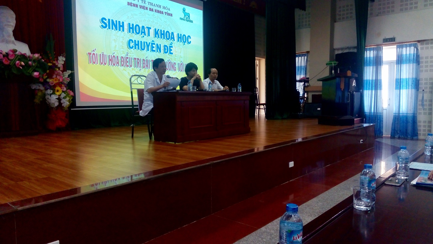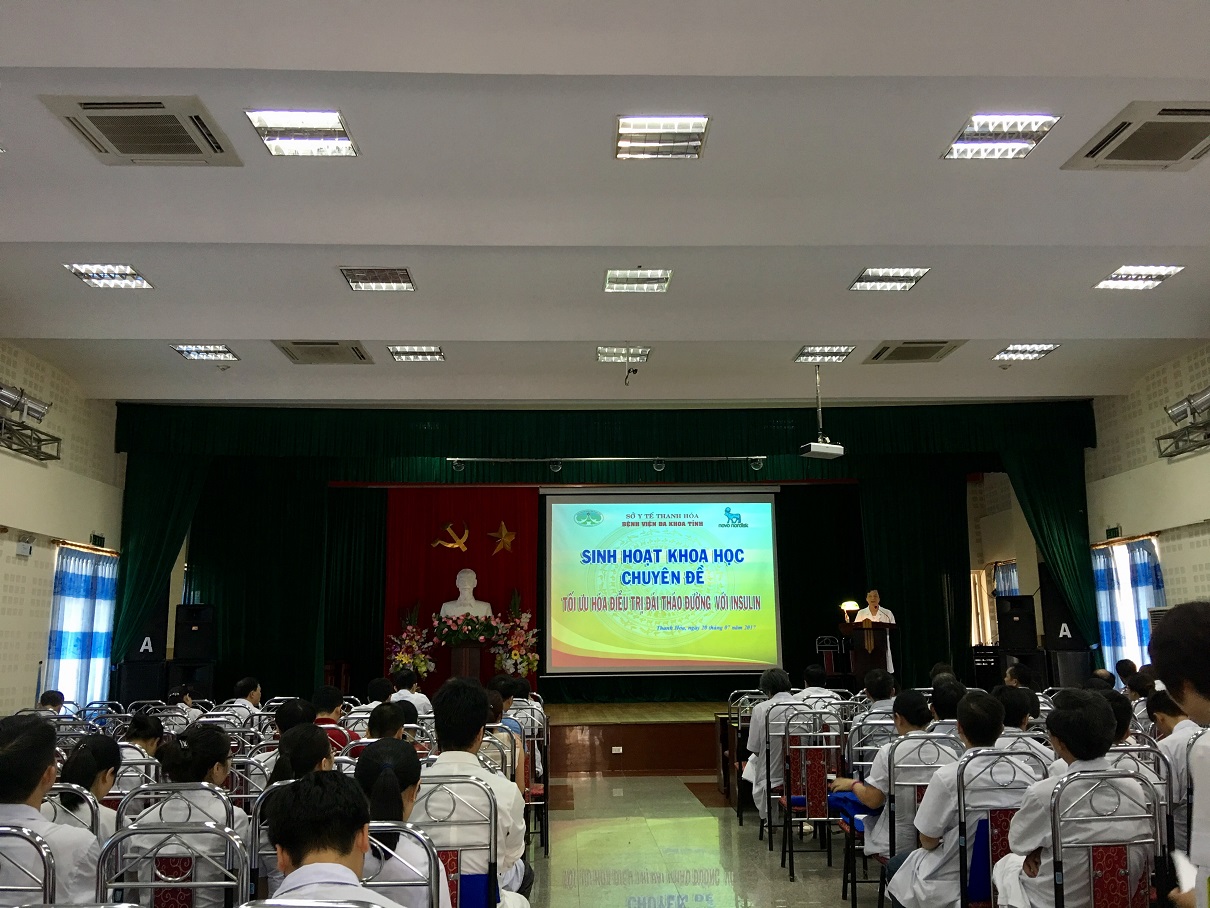 Nhằm nâng cao kỹ năng chẩn đoán, điều trị bệnh đái tháo đường cho các bác sỹ trong tỉnh, ngày 20/7/2017, Bệnh viện Đa khoa tỉnh Thanh Hóa phối hợp với Hãng Novo Nordisk tổ chức Hội thảo khoa học“Tối ưu hóa điều trị đái tháo đường với Insulin Analogue” với sự tham gia chủ trì của PGS.TS.BS Vũ Thị Thanh Huyền – Trưởng khoa khám bệnh – Bệnh viện Lão khoa Trung Ương, BS.CKII Lê Văn Sỹ– Giám đốc Bệnh viện đa khoa tỉnh Thanh Hóa. Tham dự Hội thảo có gần 200 bác sỹ của Bệnh viện đa khoa tỉnh và các bác sỹ trên địa bàn toàn tỉnh.