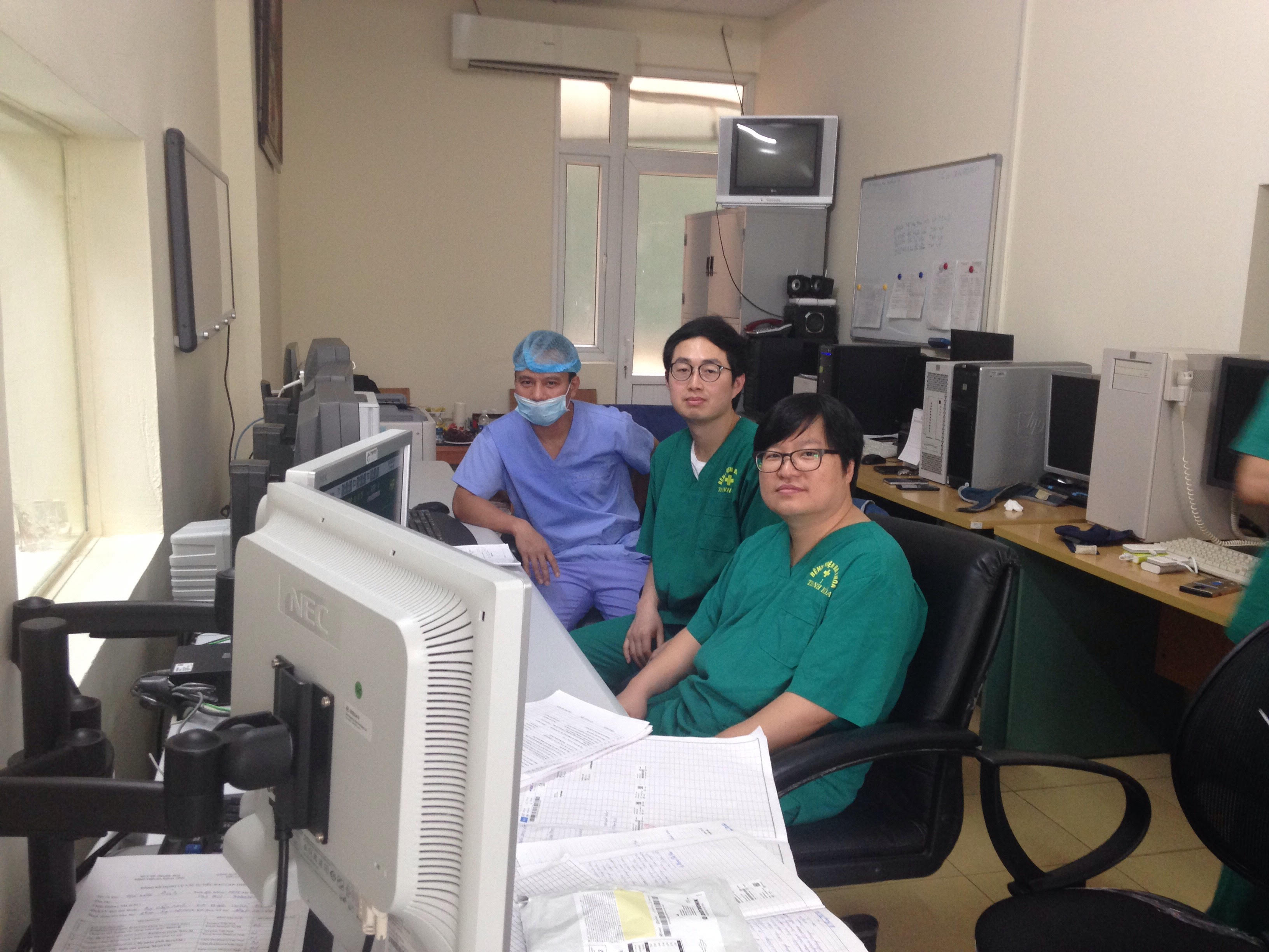Gs Byung – Hee Hwang và các bác sĩ Đơn vị Can thiệp mạch đang tiến hành 01 ca can thiệp động mạch vành