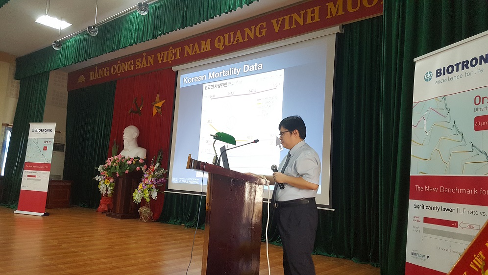 Phát biểu tại Hội thảo, Giáo sư Byung – Hee Hwang trân trọng cảm ơn Bệnh viện Đa khoa tỉnh Thanh Hóa đã phối hợp tổ chức buổi gặp gỡ và trao đổi kinh nghiệm. Ông cũng đánh giá cao và tỏ ra khá bất ngờ với cách thức tổ chức khu vực can thiệp tương đối chuẩn mực cũng như trình độ của các bác sĩ, kỹ thuật viên tại Đơn vị Can thiệp tim mạch tại một Bệnh viện tuyến tỉnh như Bệnh viện Đa khoa tỉnh Thanh Hóa.