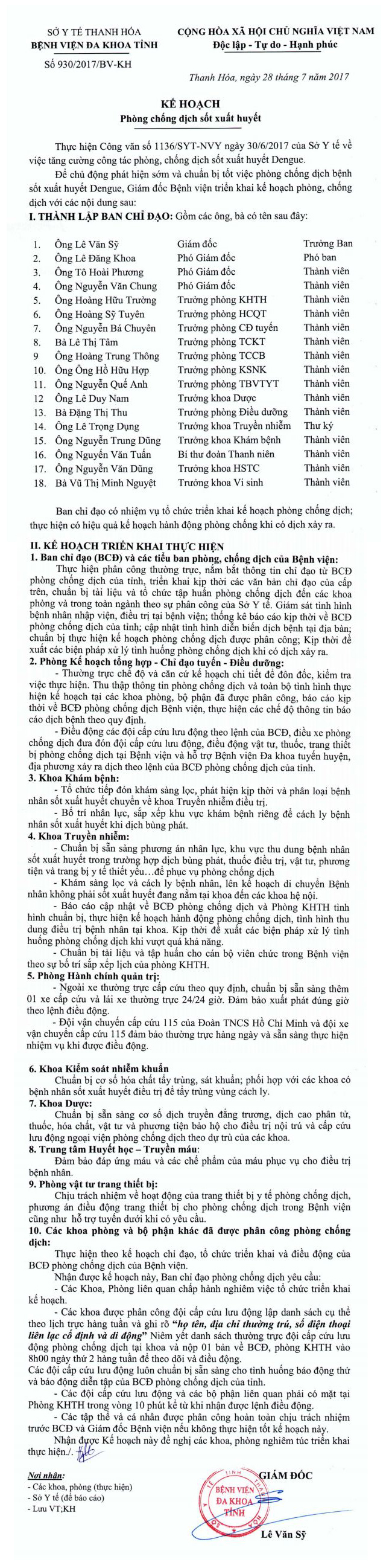Kế hoạch phòng chống dịch sốt xuất huyết