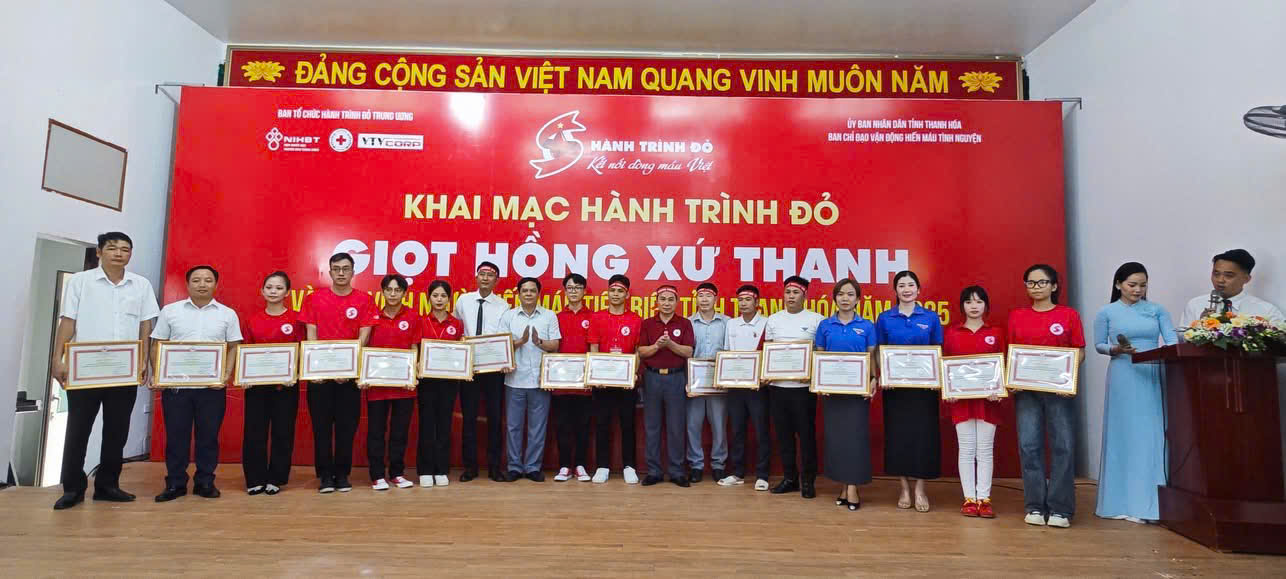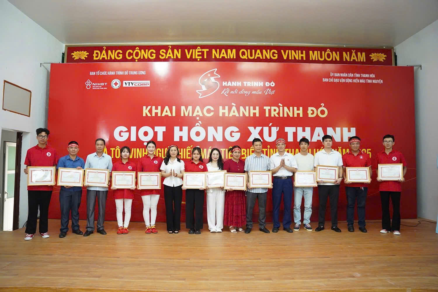 Tại Lễ khai mạc, Ban Chỉ đạo vận động hiến máu tình nguyện tỉnh Thanh Hóa cũng đã trao bằng khen của Trung ương Hội Chữ thập đỏ Việt Nam, bằng khen của Chủ tịch UBND tỉnh và giấy khen của Ban chỉ đạo vận động hiến máu tình nguyện tỉnh Thanh Hóa cho các tập thể, gia đình, cá nhân đã có thành tích xuất sắc trong công tác hiến máu tình nguyện năm 2025.