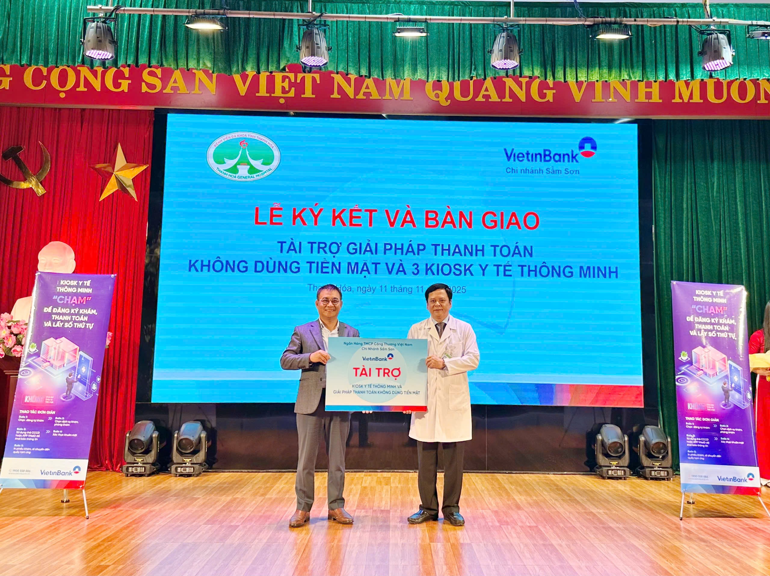 Chiều ngày 11/11/2025, Ngân hàng Thương mại Cổ phần Công thương Việt Nam – Chi nhánh Sầm Sơn (VietinBank Sầm Sơn) phối hợp với Bệnh viện Đa khoa tỉnh Thanh Hóa tổ chức Lễ bàn giao Kiosk y tế thông minh và Giải pháp thanh toán viện phí không dùng tiền mặt.