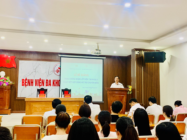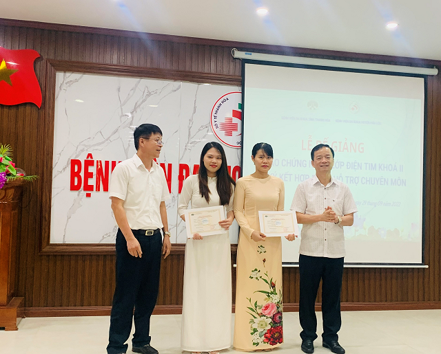 Cũng tại buổi Lễ, Đại diện Lãnh đạo Bệnh viện Đa khoa tỉnh đã bế giảng lớp “Điện tim lâm sàng” khoá 2 và trao chứng nhận đào tạo cho 32 học viên là các Bác sĩ của Bệnh viện Đa khoa Hậu Lộc.