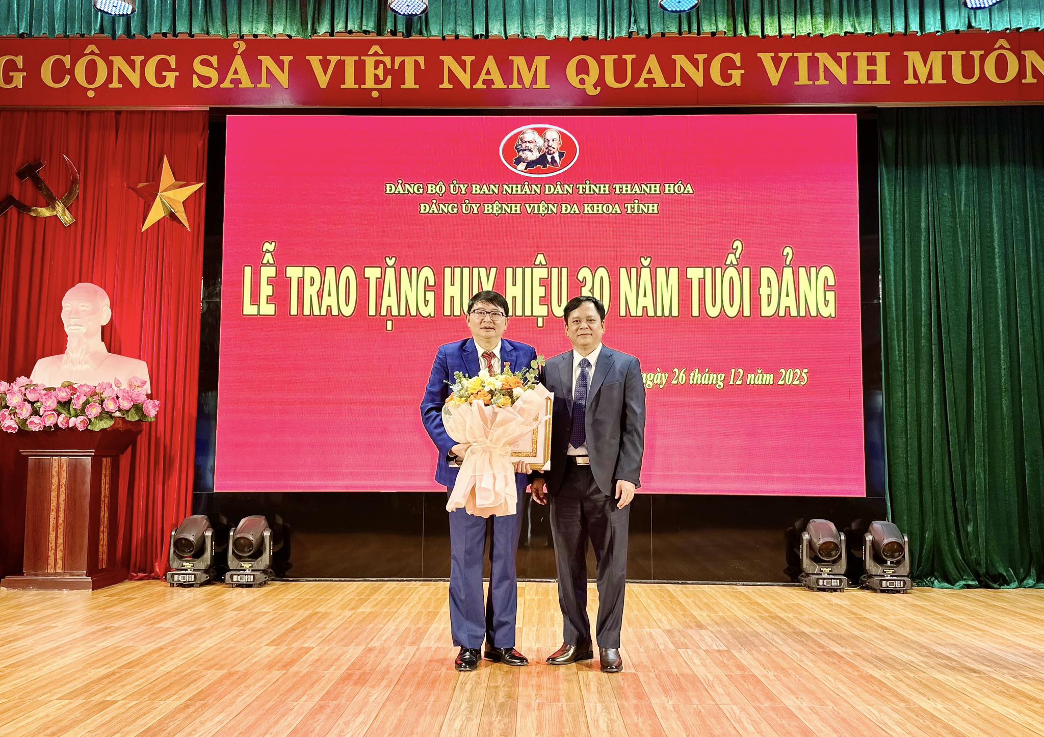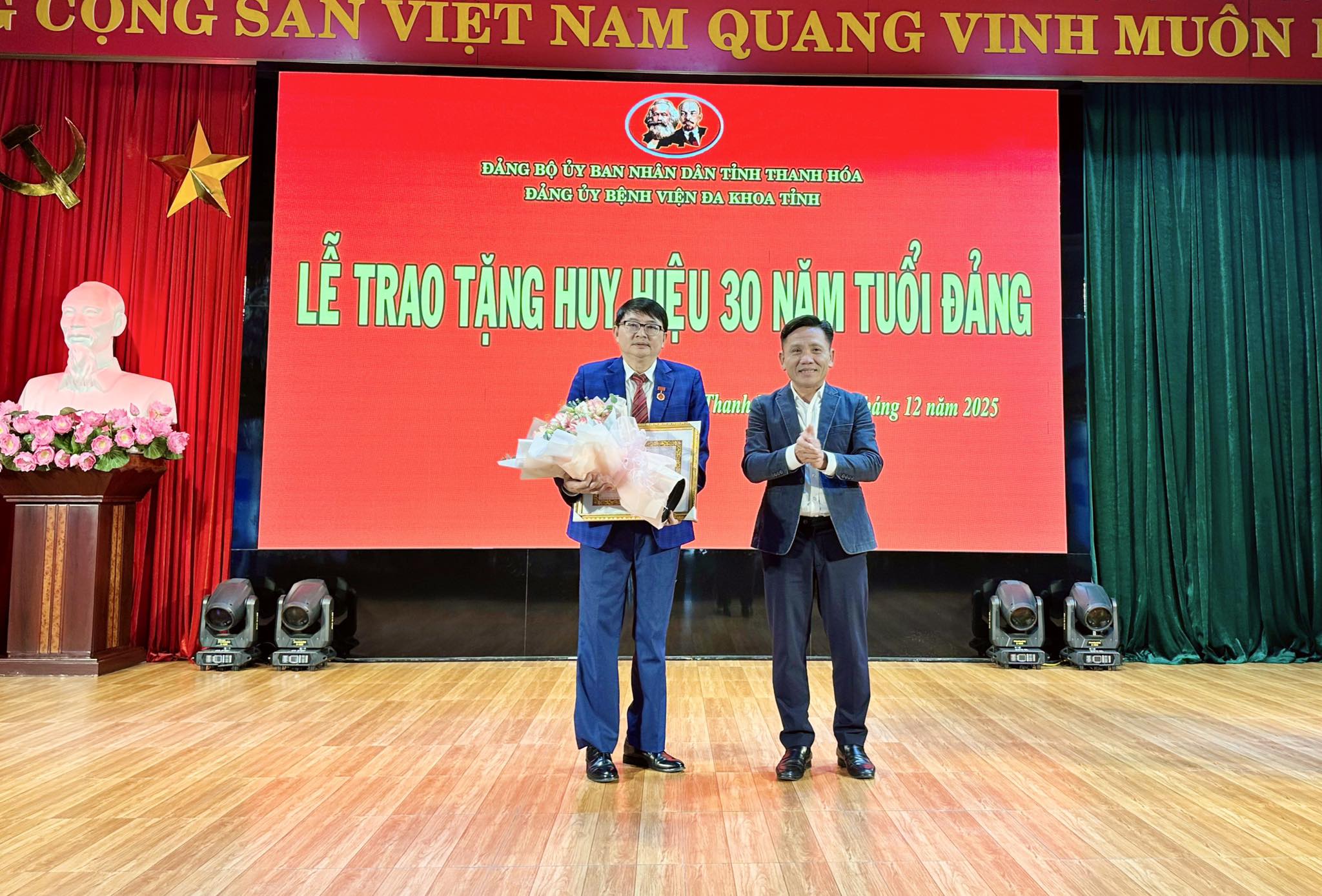 Chiều ngày 26/12/2025, Đảng ủy Bệnh viện Đa khoa tỉnh Thanh Hóa tổ chức Lễ trao tặng Huy hiệu 30 năm tuổi Đảng cho đồng chí Lê Thanh hải – Phó trưởng khoa Tai mũi họng, Đảng viên thuộc Đảng bộ Bệnh viện.