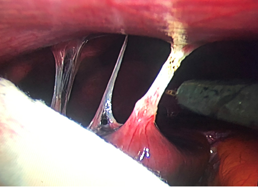 Hình ảnh các dây chằng giữa mặt trước gan và thành bụng qua nội soi