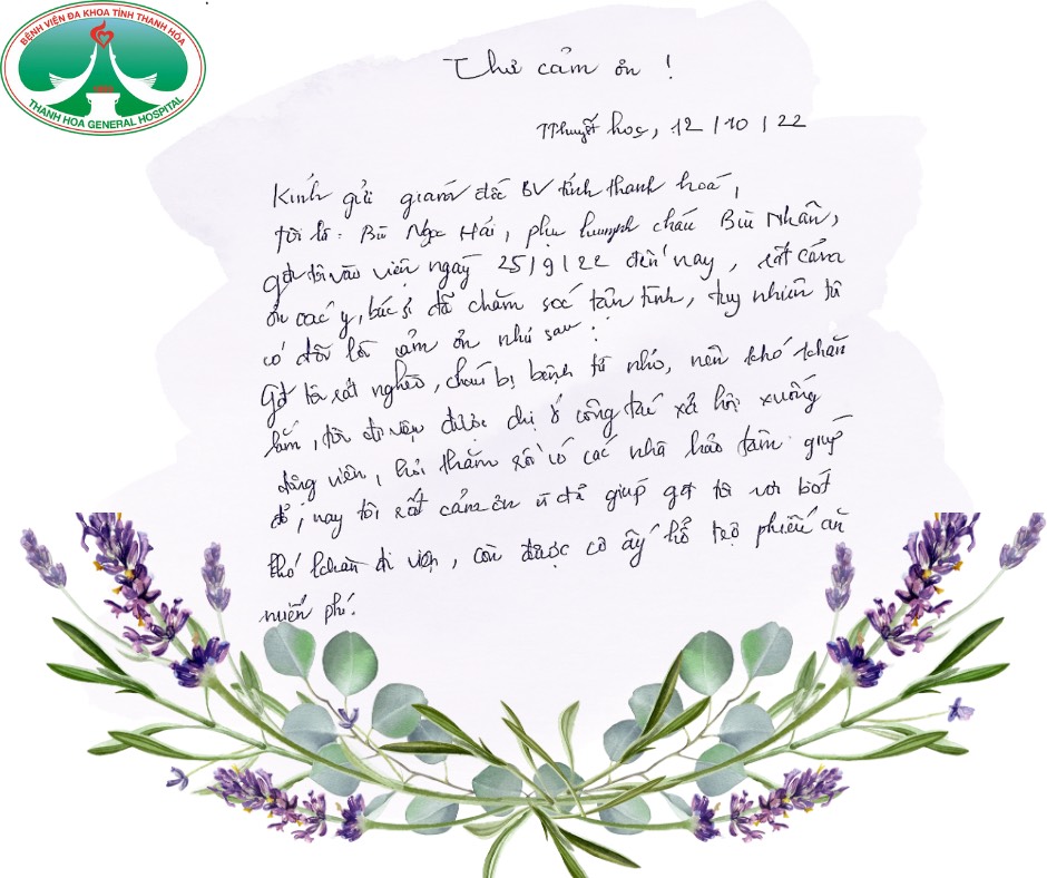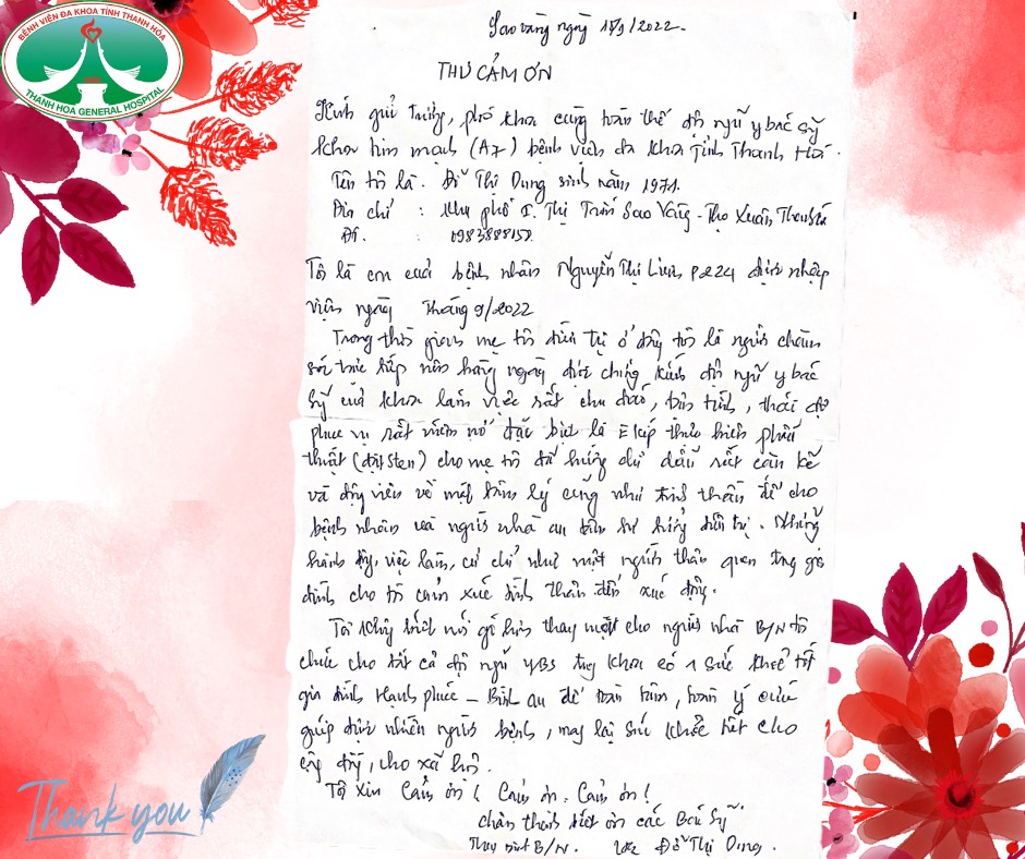 Dưới đây là nội dung một số bức thư rất xúc động do người bệnh và thân nhân gửi đến tập thể cán bộ viên chức Bệnh viện Đa khoa tỉnh Thanh Hoá trong năm 2022: