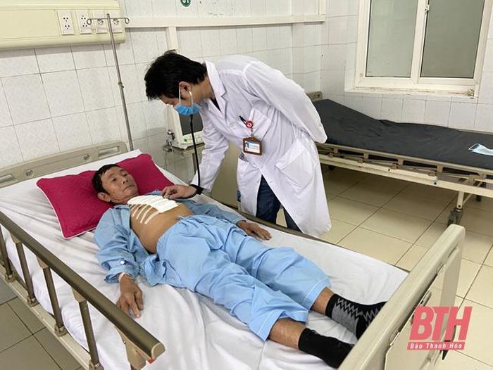 Ông Lò Văn Vịnh đang được bác sĩ của Bệnh viện Đa khoa tỉnh Thanh Hóa thăm, khám bệnh.