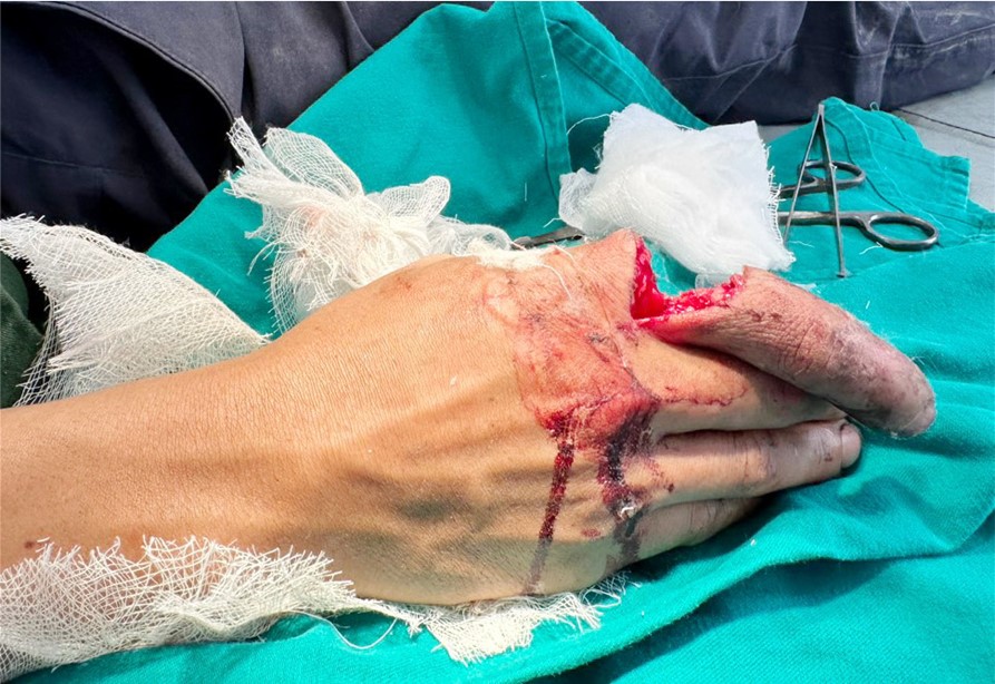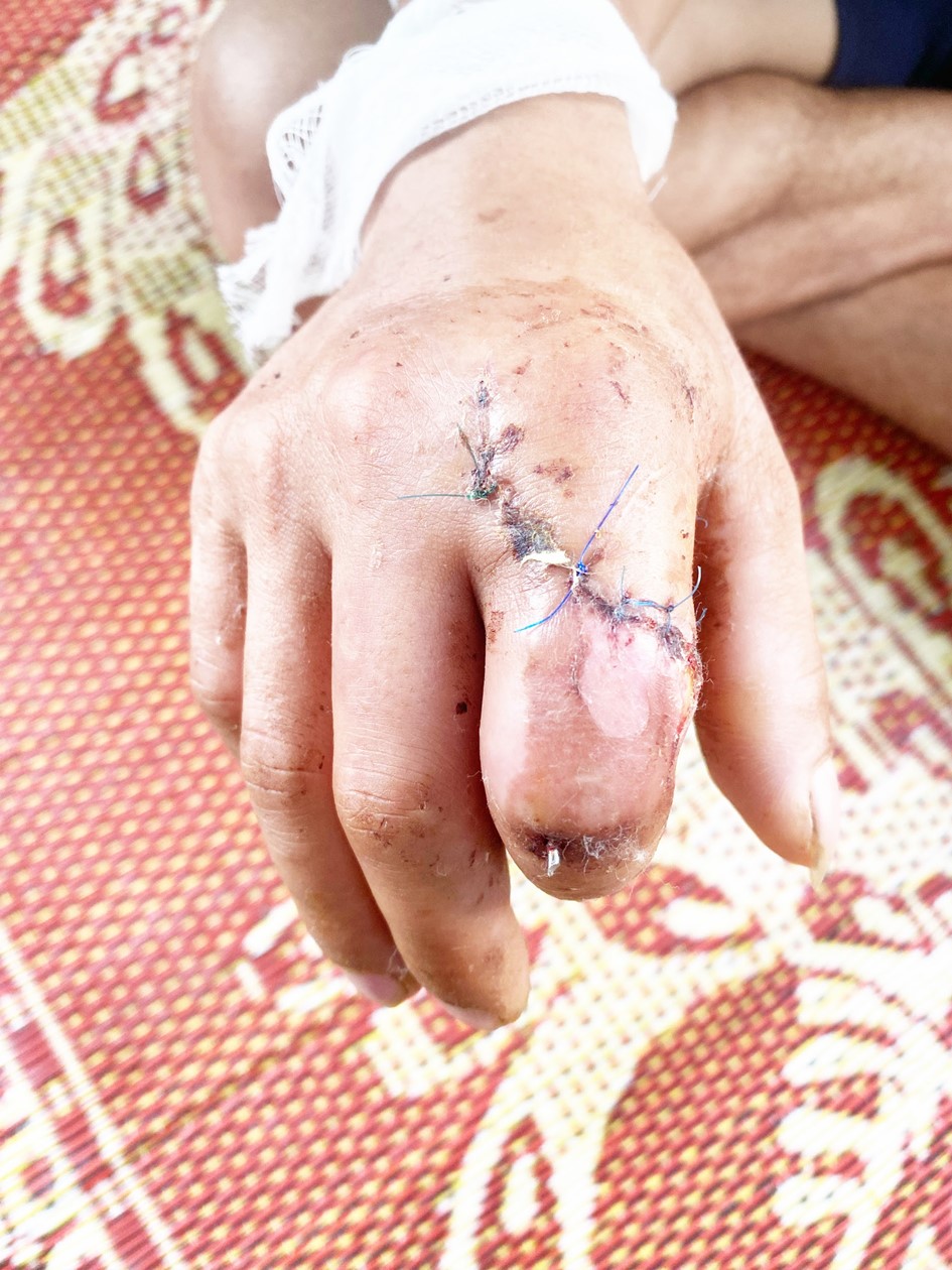 Ngón tay bị đứt gần lìa của bệnh nhân