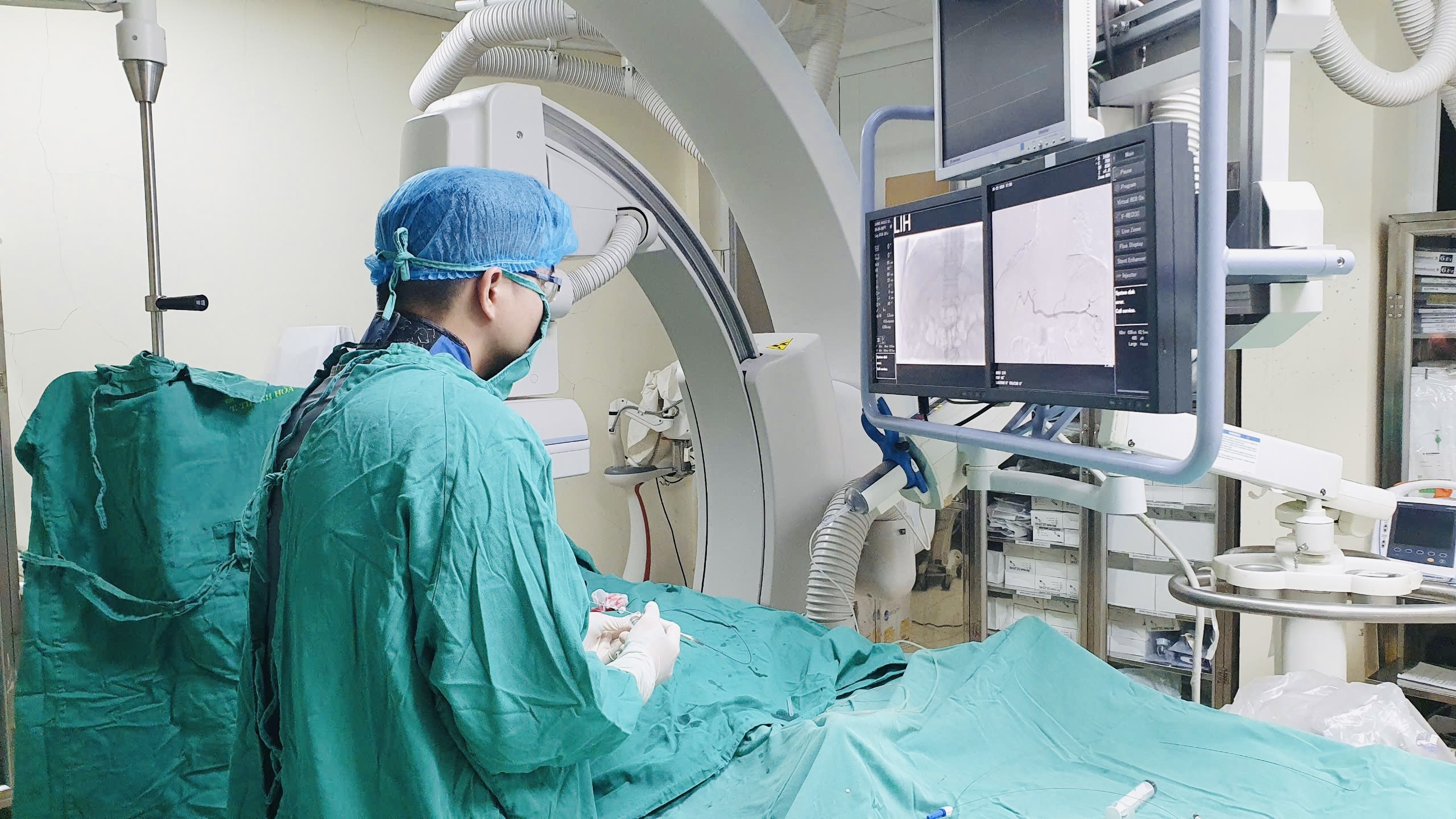 Bệnh nhân Đ.N.Đ đang được các bác sĩ thực hiện kỹ thuật can thiệp nút mạch TACE