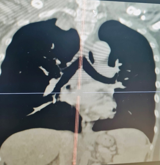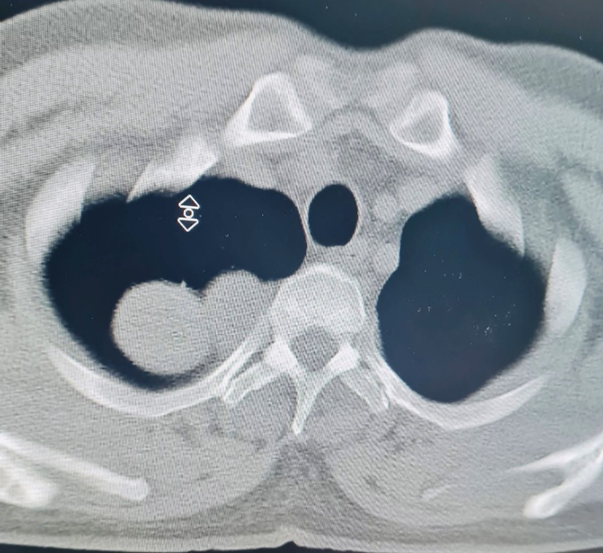 Bệnh nhân là anh Nguyễn Đức T. 40 tuổi vào viện trong tình trạng tức ngực, khó thở kéo dài, đau lưng, vai và cánh tay. Qua chụp cộng hưởng từ và cắt lớp vi tính phát hiện bệnh nhân có khối u từ trong ống sống ngực đã phát triển vào trong lồng ngực với kích thước lớn 3×4 cm. Khối u này đã phát triển vào trung thất sau ăn sát hõm đỉnh lồng ngực, đè đẩy vào bó mạch thần kinh cánh tay, đặc biệt là tĩnh mạch dưới đòn trái.