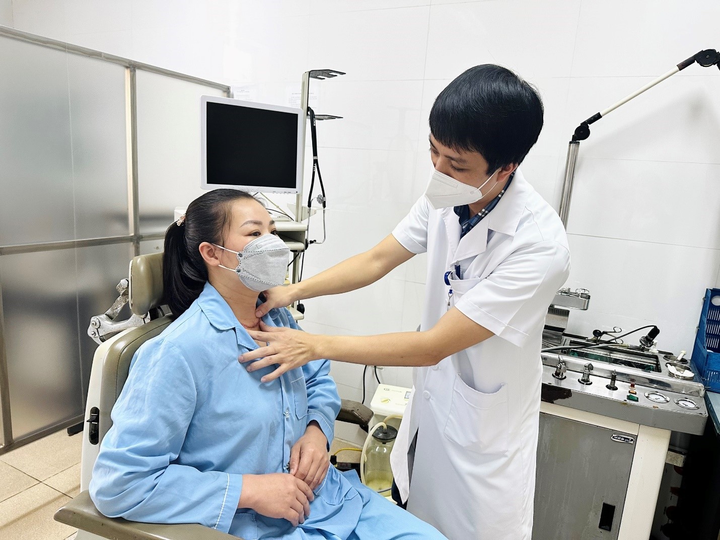 Bệnh nhân là chị K.T.M 40 tuổi và N.T.N 52 tuổi có triệu chứng nuốt vướng, khàn giọng, thể trạng gầy sút…Cả hai bệnh nhân đều được gia đình đưa đến khám tại Bệnh viện Đa khoa tỉnh Thanh Hóa và được các bác sỹ chẩn đoán bị ung thư tuyến giáp thể nhú.