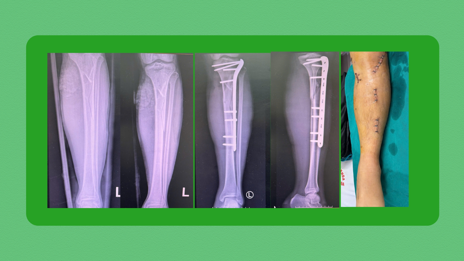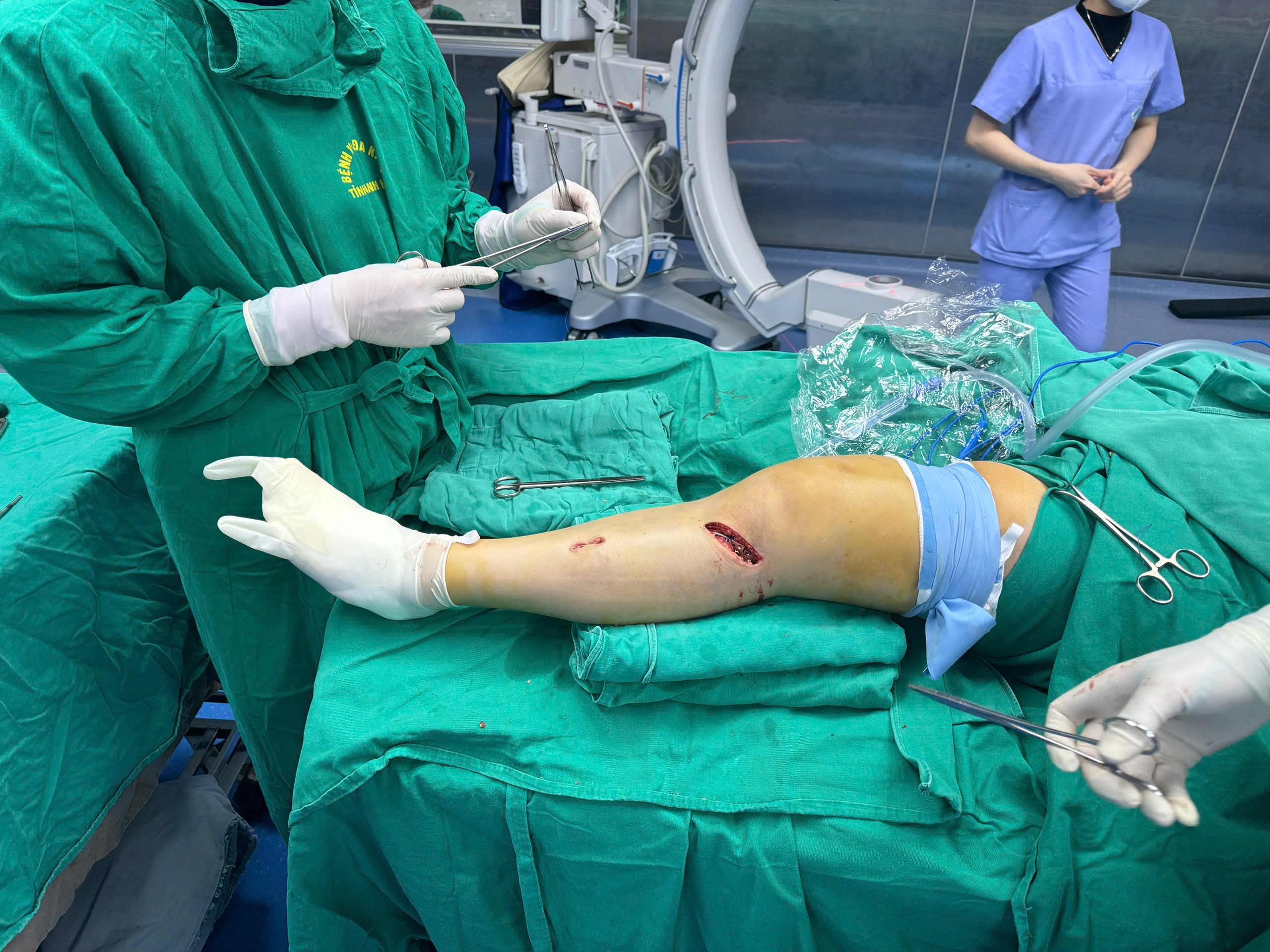 Ca bệnh gần đây được thực hiện thành công phẫu thuật kết hợp xương bằng phương pháp MIPO làbệnh nhân Đ.V.T (39 tuổi, trú tại xã Hải Lộc, huyện Hậu Lộc, Thanh Hóa). Bệnh nhân nhập viện trong tình trạng sưng đau vùng gối và cẳng chân trái do tai nạn giao thông.