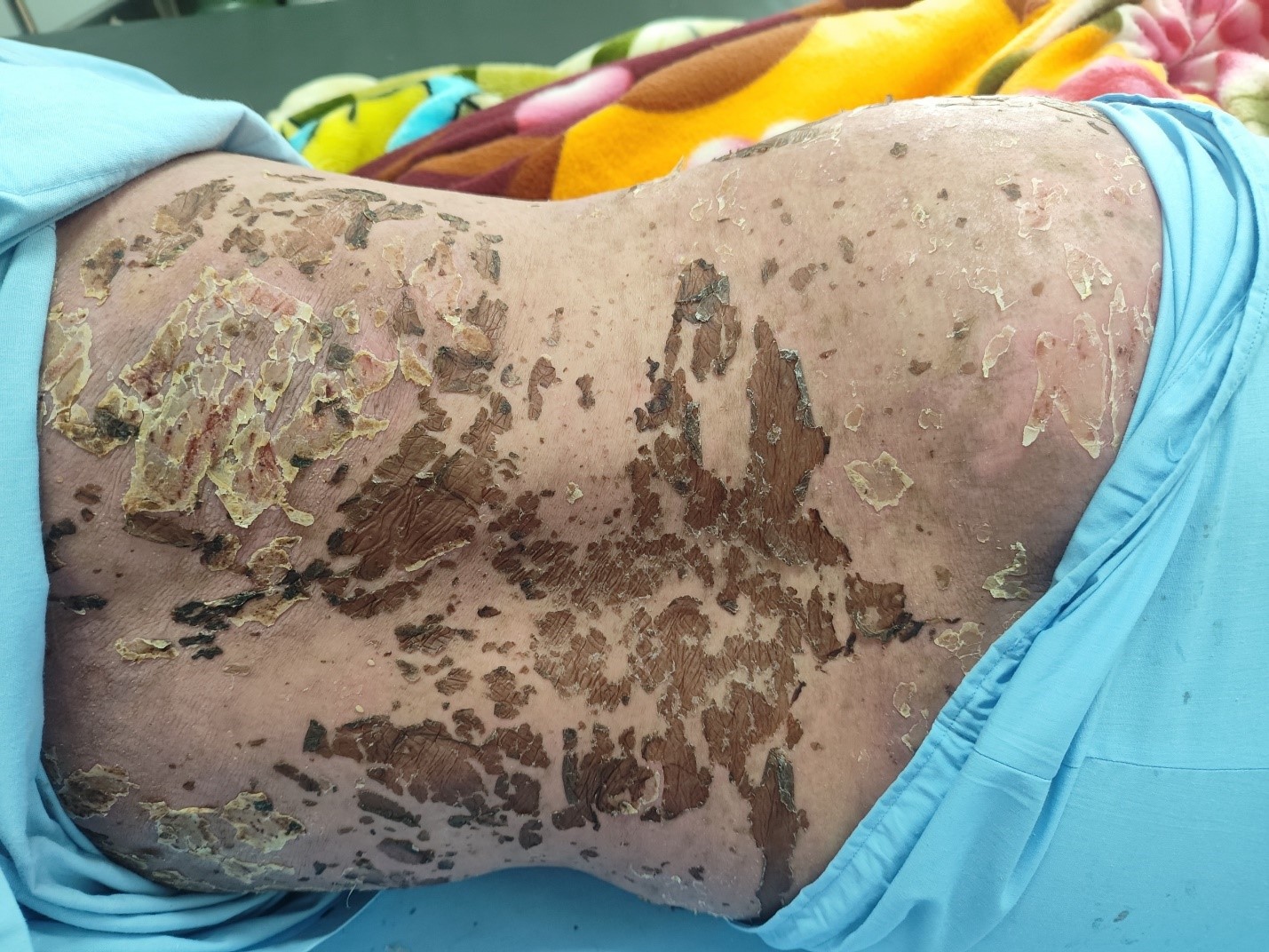 Bệnh nhân Nguyễn Thị H. có triệu chứng trợt da đến 80% diện tích cơ thể.