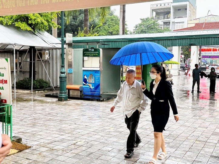 Tiếp đón bệnh nhân khi trời mưa.