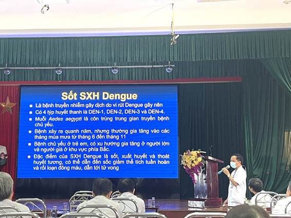Tại buổi tập huấn , Bs.CKI. Đỗ Xuân Tiến – Trưởng khoa Bệnh nhiệt đới, Bệnh viện Đa khoa tỉnh Thanh Hóa đã cung cấp những kiến thức cơ bản về hướng dẫn chẩn đoán, phân loại, xử trí và phác đồ điều trị bệnh sốt xuất huyết Dengue theo Quyết định số 3705/QĐ-BYT ngày 22/08/2019 của Bộ Y tế.