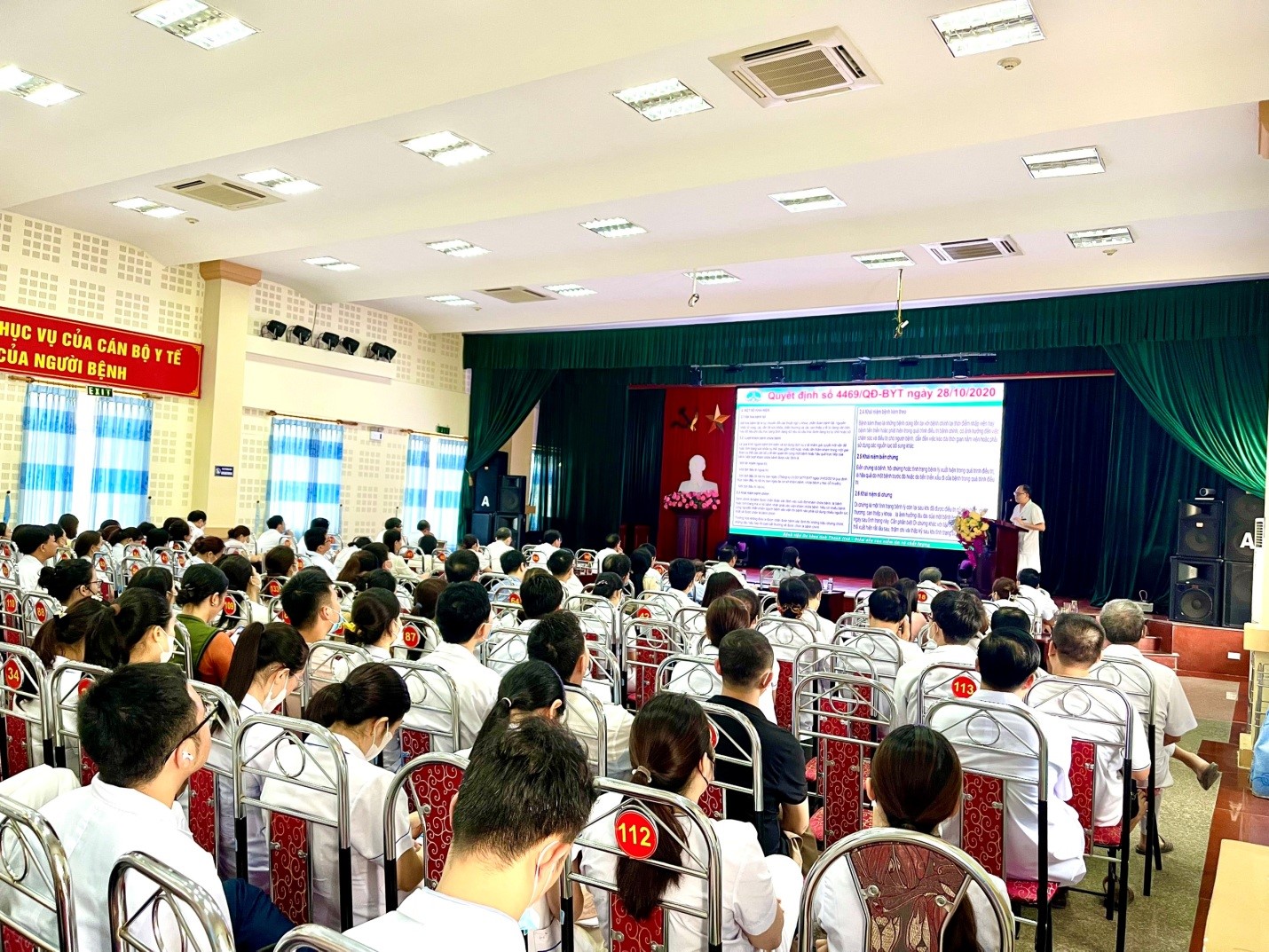 Chiều 09-5, Bệnh viện Đa khoa tỉnh Thanh Hóa tổ chức tập huấn hướng dẫn cập nhật hồ sơ bệnh án theo chuẩn và định dạng dữ liệu đầu ra phục vụ quản lý và giám định, thanh toán chi phí khám bệnh, chữa bệnh và hướng dẫn mã hóa bệnh tật theo ICD-10 và phân loại phẫu thuật, thủ thuật theo ICD-9. Tham dự buổi tập huấn có Ban Giám đốc Bệnh viện, Lãnh đạo các khoa, phòng, trung tâm và gần 300 bác sĩ, điều dưỡng, kỹ thuật viên, kế toán viên, kỹ sư tin học…. trong Bệnh viện.