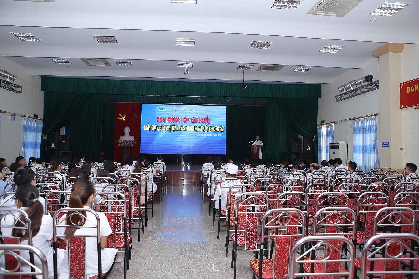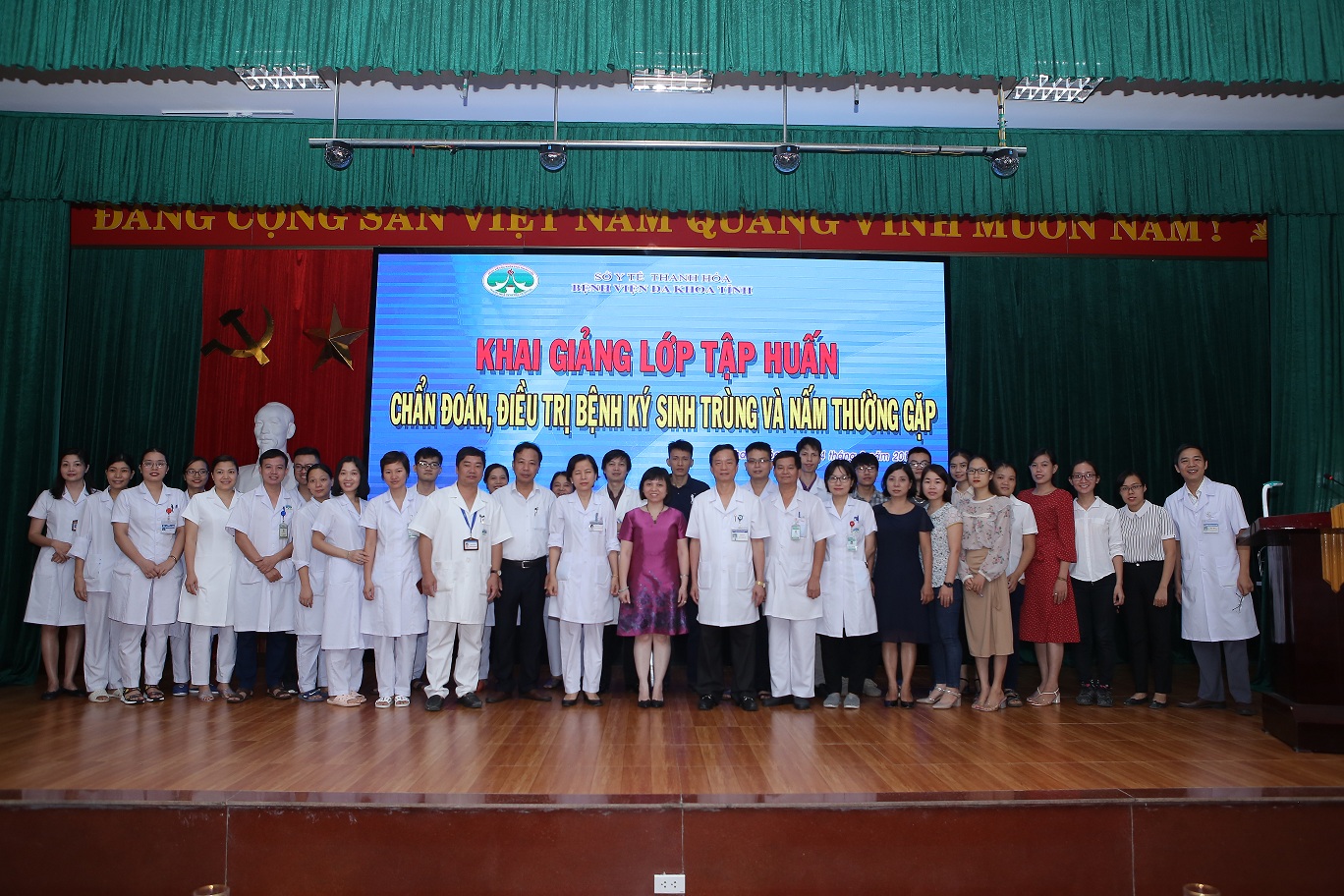 Với mục tiêu cập nhật, nâng cao kiến thức và chia sẻ kinh nghiệm trong chẩn đoán và điều trị bệnh ký sinh trùng và nấm, sáng ngày 22/10/2019, Bệnh viện Đa khoa tỉnh Thanh Hóa phối hợp Bệnh viện Bệnh Nhiệt đới Trung ương tổ chức khai giảng khóa tập huấn về ký sinh trùng và nấm thường gặp. Khóa học thu hút sự tham gia của hơn 50 học viên là các Bác sĩ đến từ các cơ sở y tế trên địa bàn tỉnh Thanh Hóa.