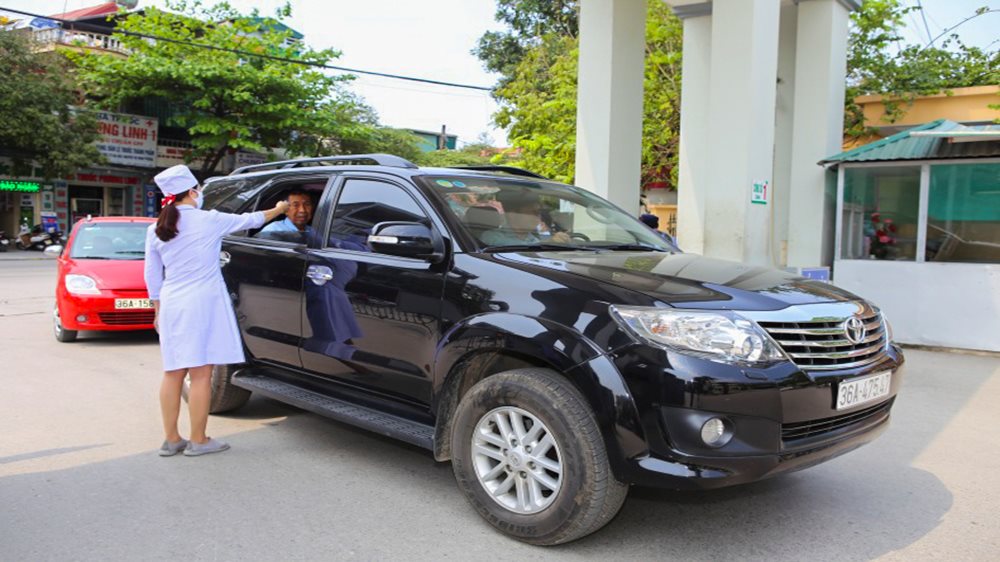 Kiểm tra thân nhiệt những người ra vào Bệnh viện