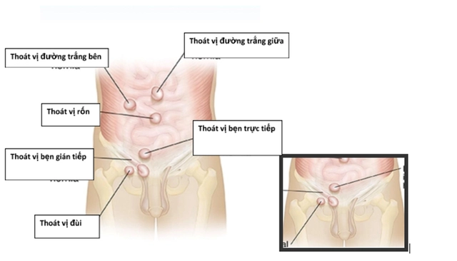 Những vị trí có thể xảy ra hiện tượng thoát vị trên cơ thể.