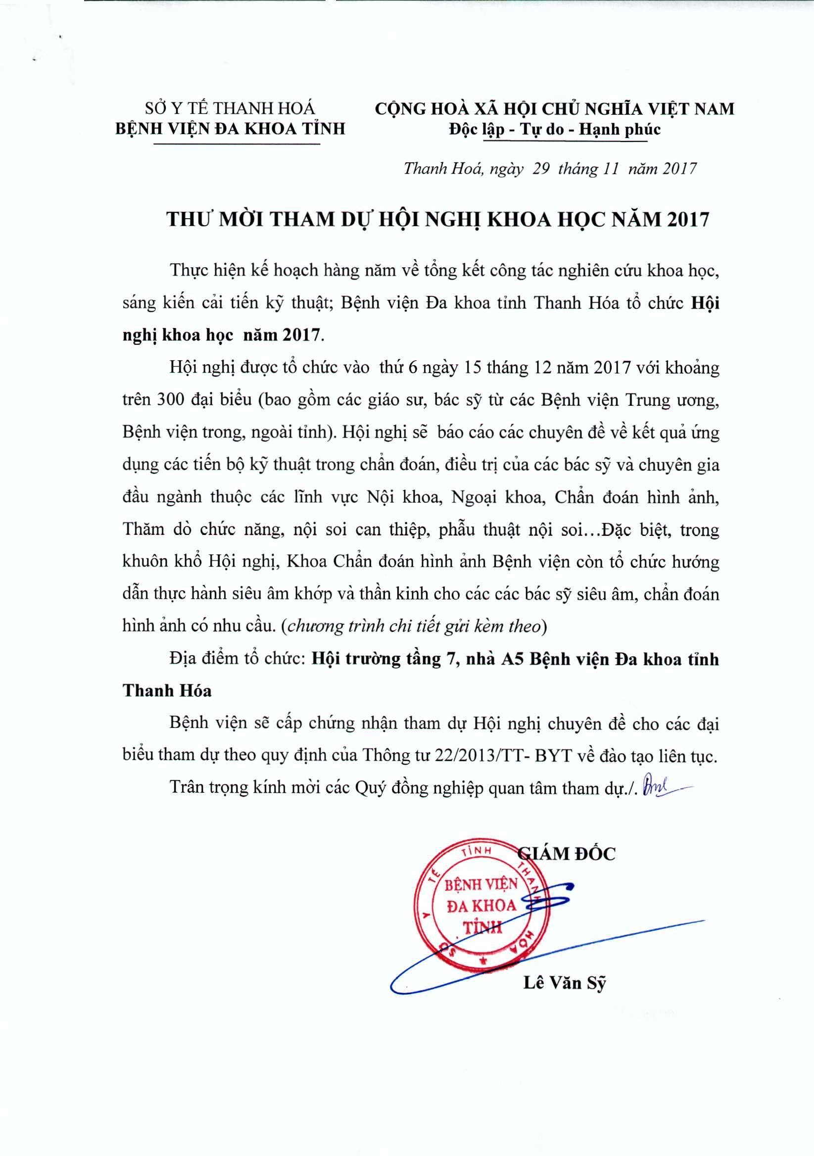 Thư mời và chương trình Hội nghị Khoa học BVĐK tỉnh Thanh Hóa năm 2017 Chi tiết nội dung chương trình Hội nghị Khoa học năm 2017 xin vui lòng xem tại file đính kèm Tài liệu đi kèm:Nội dung chương trình Hội nghị Khoa học