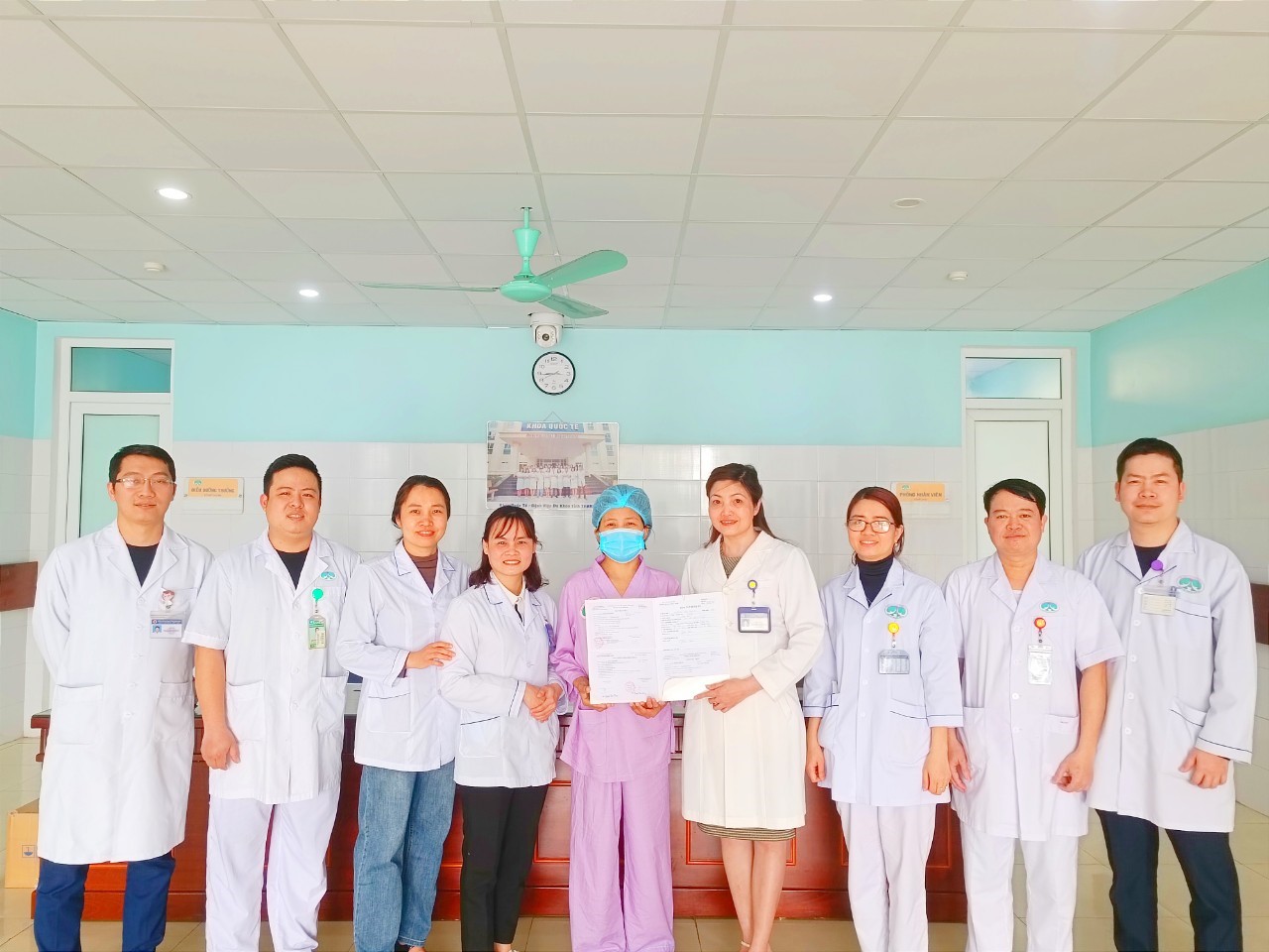 Ê kíp phẫu thuật và chăm sóc trao giấy ra viện cho bệnh nhân H.T.O