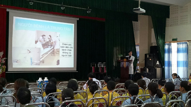 Việc tư vấn truyền thông GDSK cho NB là một trong các nhiệm vụ trong chăm sóc người bệnh tại cơ sở y tế, chính vì vậy phòng Điều dưỡng phối hợp cùng khoa Dinh dưỡng tổ chức buổi truyền thông, tư vấn GDSK và tư vấn dinh dưỡng cho số NB và người nhà NB tham dự buổi họp hội đồng người bệnh có thêm kiến thức trong chăm sóc sức khỏe trong quá trình nằm điều trị cũng như khi trở về cộng đồng.