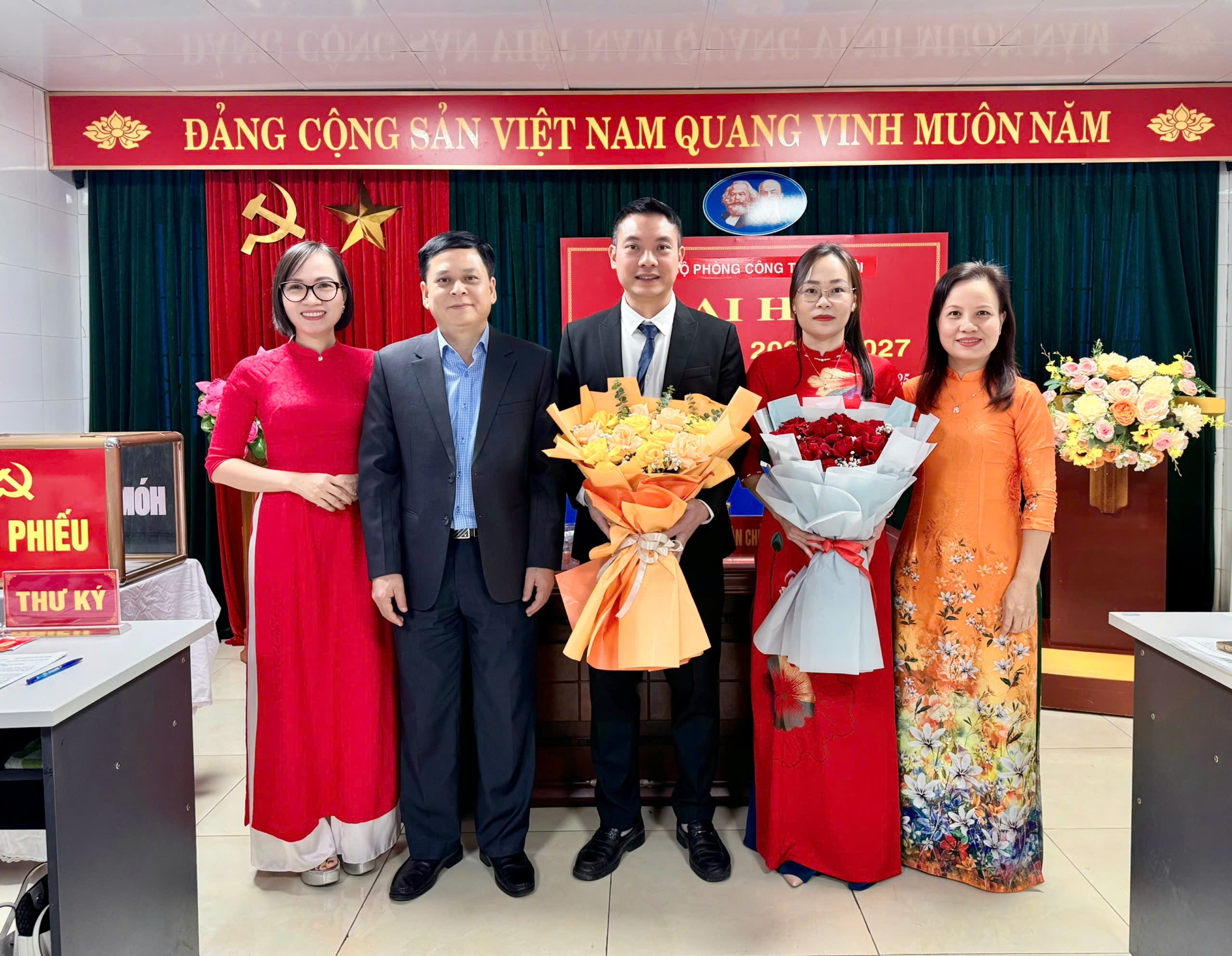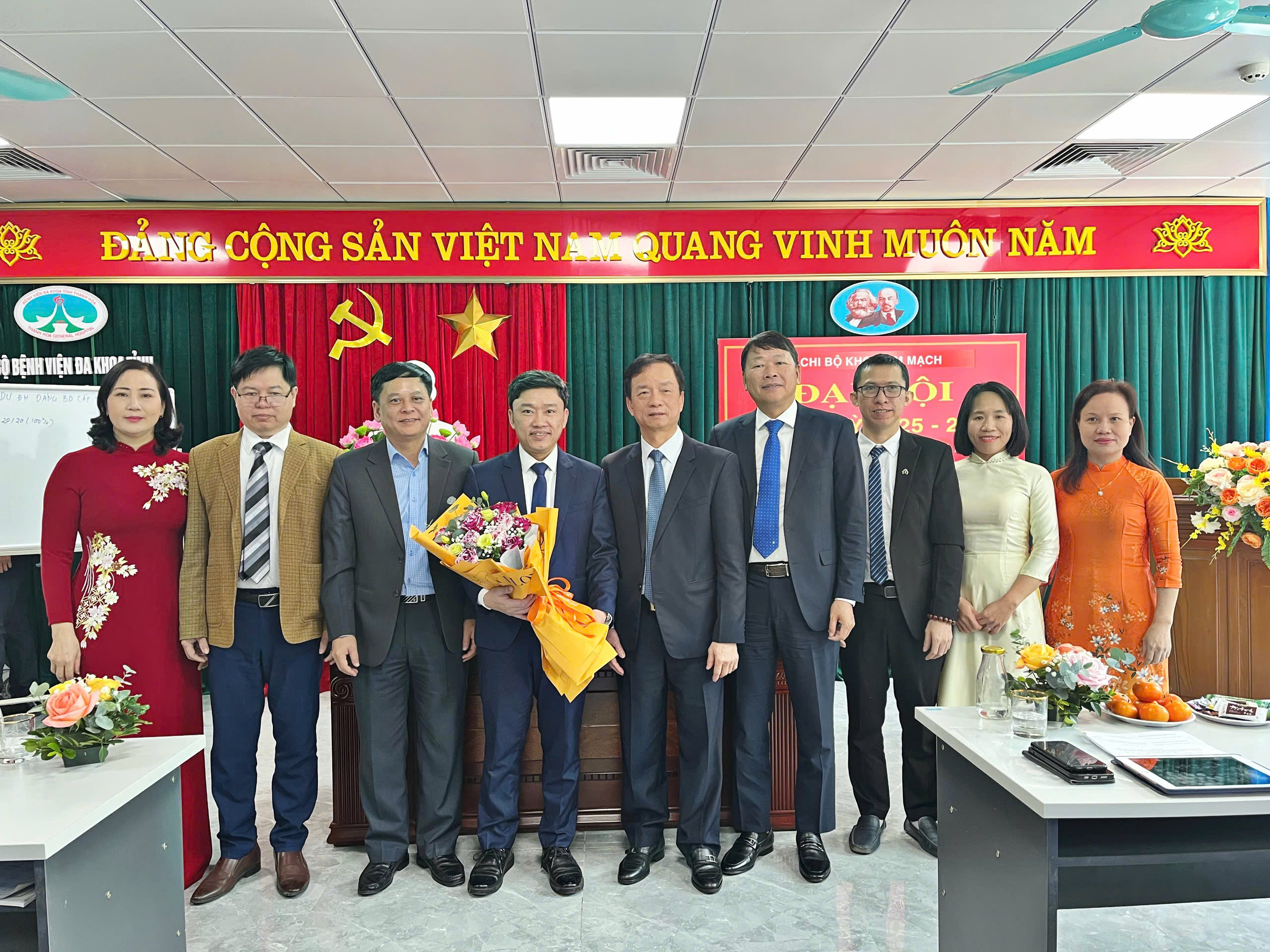 Các đồng chí trong BTV Đảng uỷ, Ban Giám đốc Bệnh viện tặng hoa chúc mừng các đại biểu trúng cử BCH Chi bộ khoá mới và đại biểu dự Đại hội Đảng bộ Bệnh viện nhiệm kỳ 2025-2030