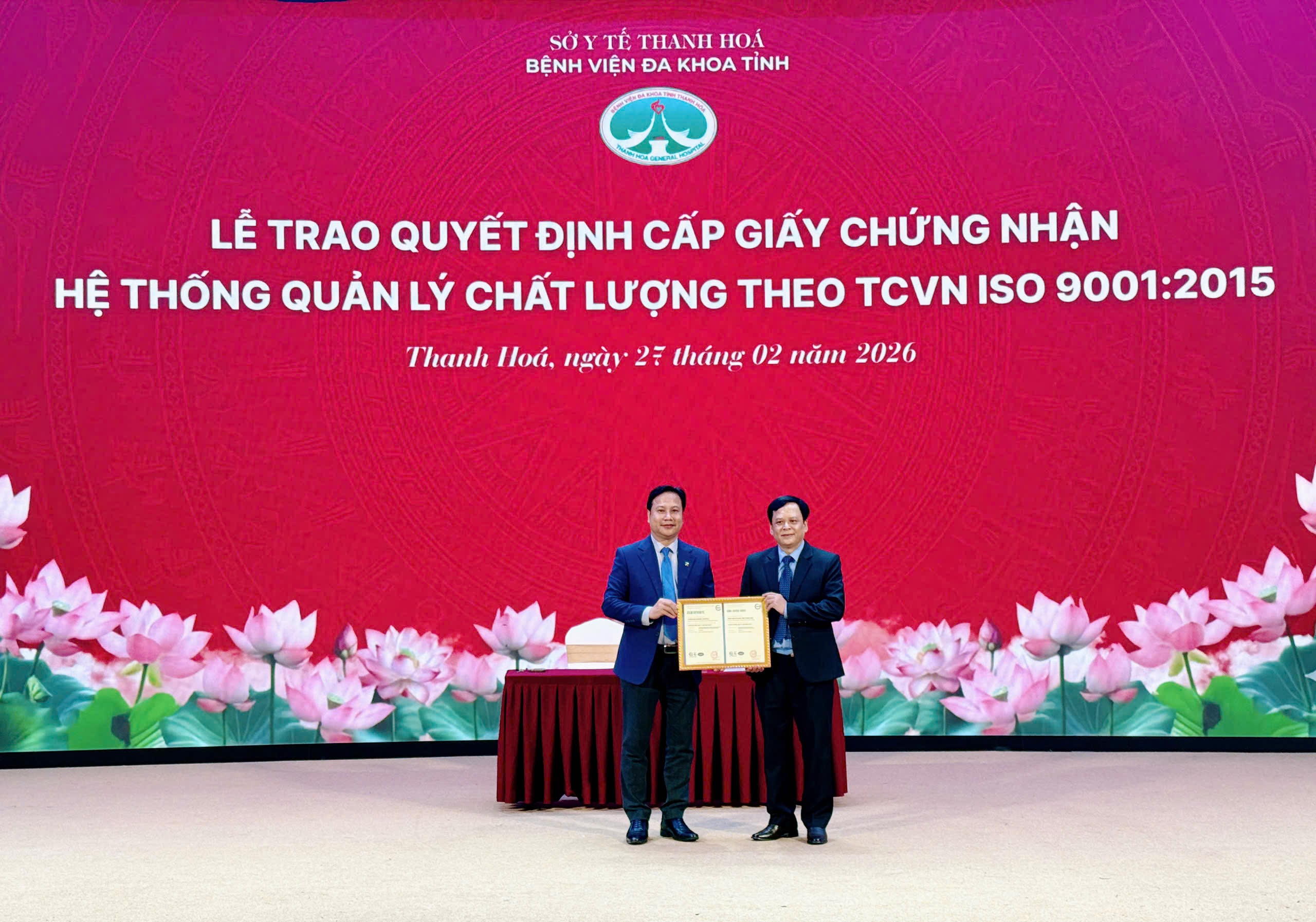 Cũng trong khuôn khổ chương trình, Trung tâm Chứng nhận phù hợp QUACERT đã trao Quyết định cấp Giấy chứng nhận hệ thống quản lý chất lượng theo tiêu chuẩn TCVN ISO 9001:2015 cho 15 khoa, phòng của Bệnh viện. Đây là dấu mốc khẳng định quyết tâm chuẩn hóa quy trình quản lý, nâng cao hiệu lực, hiệu quả điều hành, từng bước xây dựng mô hình bệnh viện hiện đại, chuyên nghiệp, hướng tới các tiêu chuẩn quốc tế.