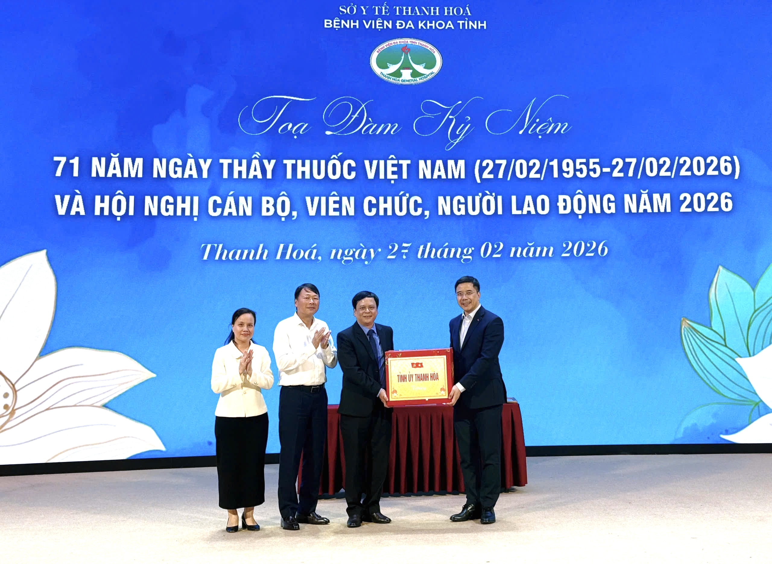 Chiều ngày 27/02/2026, Bệnh viện Đa khoa tỉnh Thanh Hóa long trọng tổ chức Tọa đàm kỷ niệm 71 năm Ngày Thầy thuốc Việt Nam (27/02/1955–27/02/2026) và Hội nghị cán bộ, viên chức, người lao động năm 2026. Tham dự chương trình có các đồng chí trong BCH Đảng bộ, Ban Giám đốc, BCH Công đoàn Bệnh viện, Lãnh đạo các khoa, phòng, trung tâm và toàn thể cán bộ, viên chức, người lao động Bệnh viện.