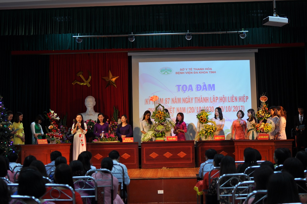 Chiều ngày 19/10/2017, được sự nhất trí, quan tâm của Đảng ủy, Ban Giám đốc Bệnh viện, Công đoàn cơ sở Bệnh viện Đa khoa tỉnh Thanh Hóa đã long trọng tổ chức tọa đàm kỷ niệm 87 năm ngày thành lập Hội liên hiệp Phụ nữ Việt Nam (20/10/1930 – 20/10/2017) và kỷ niệm 7 năm ngày Phụ nữ Việt Nam.