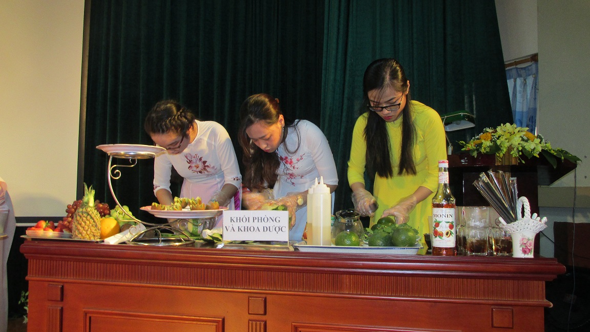 Tiếp theo chương trình vinh danh Phụ nữ tiêu biểu, Ban chấp hành Công đoàn Bệnh viện đã tổ chức Hội thi nữ công gia chánh để chị em bệnh viện có cơ hội thể hiện tài nội trợ khéo léo của mình. Nội dung của Hội thi là cắt tỉa, trang trí đĩa trái cây và pha chế đồ uống tiếp khách.