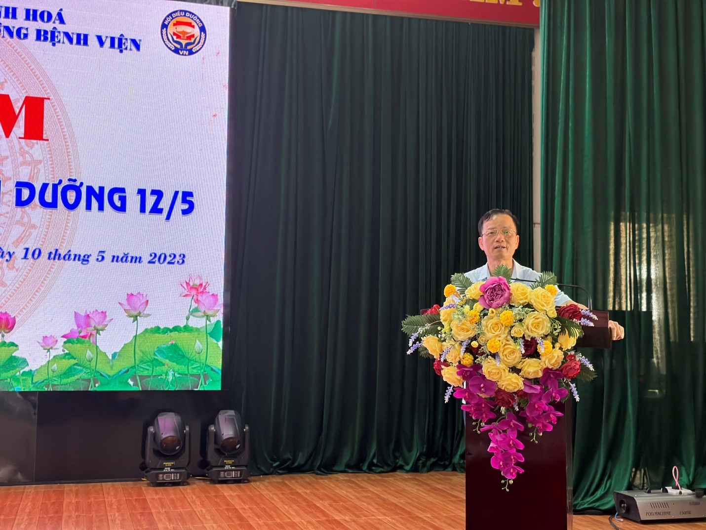 Đồng chí Phạm Thị Việt Hà – Chủ tịch Chi hội Điều dưỡng Bệnh viện, Phó trưởng phòng Điều dưỡng đã ôn lại ý nghĩa lịch sử Ngày Quốc tế Điều dưỡng