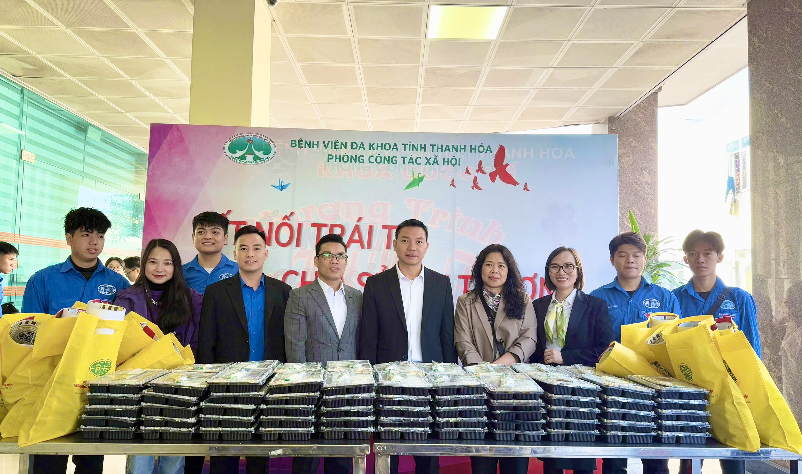 Nhân dịp Tết Ất Tỵ năm 2025, với mong muốn khích lệ động viên tinh thần các bệnh nhân mắc bệnh hiểm nghèo, bệnh nhân có hoàn cảnh khó khăn, ngày 17/01/2025 Bệnh viện Đa khoa tỉnh Thanh Hóa đã kết nối với Đoàn Thanh niên – Hội sinh viên Trường Đại học Kinh doanh và Công nghệ Hà Nội tổ chức trao tặng 100 suất ăn dinh dưỡng và 100 suất quà Tết cho bệnh nhân có hoàn cảnh khó khăn Khoa Bệnh Nhiệt đới và Khoa Nội thận – Tiết niệu.