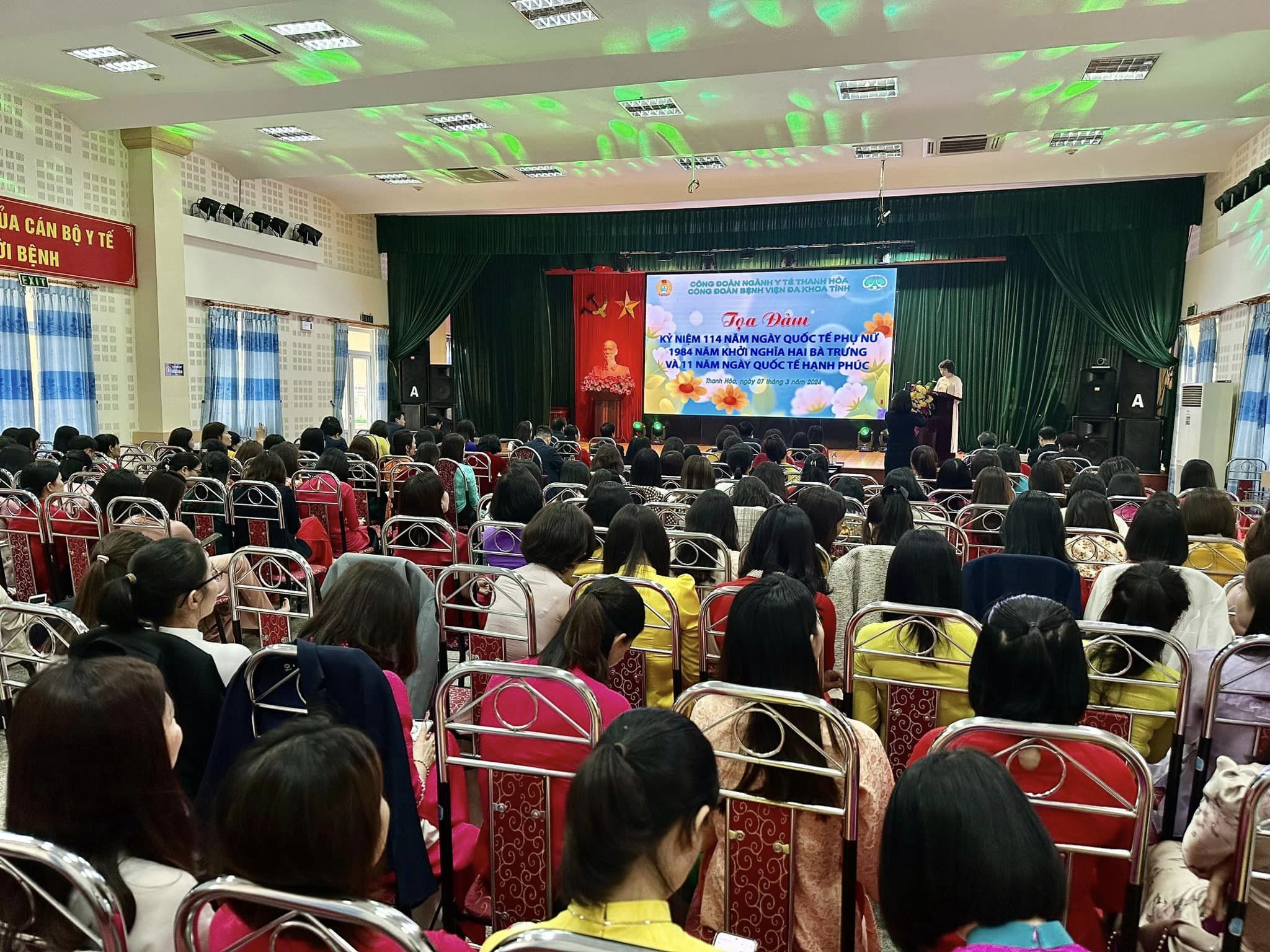 Tham dự buổi tọa đàm có các đồng chí trong BCH Đảng bộ, Ban Giám đốc, BCH Công đoàn Bệnh viện, Trưởng các tổ chức đoàn thể chính trị – xã hội và gần 200 cán bộ, viên chức nữ của Bệnh viện. Trong không khí vui vẻ, đầm ấm của buổi tọa đàm, đồng chí Đoàn Thị Bích – Uỷ viên BCH Công đoàn Bệnh viện, Trưởng Ban nữ công đã ôn lại lịch sử của ngày 8/3, điểm qua những thành tích của phụ nữ Việt Nam trong những năm qua và bày tỏ sự tri ân tới những thành tích đóng góp của phụ nữ Bệnh viện Đa khoa tỉnh trong sự nghiệp xây dựng và phát triển bệnh viện.