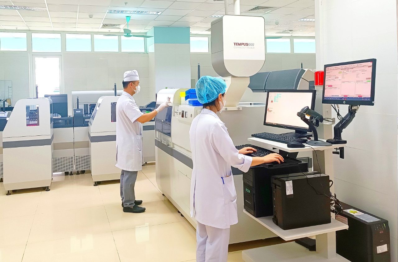 Hàng trăm kỹ thuật xét nghiệm chuyên sâu về hóa sinh, huyết học, sinh học phân tử, vi sinh đã được triển khai ứng dụng góp phần nâng cao chất lượng chuyên môn. Từ năm 2019 phòng xét nghiệm Khoa Hóa sinh, Trung tâm Huyết học-Truyền máu và Khoa Vi sinh đã đạt tiêu chuẩn quốc tế ISO 15189:2012. Bệnh viện đã triển khai và công bố khánh thành phòng xét nghiệm thông minh vào tháng 20/4/2022.