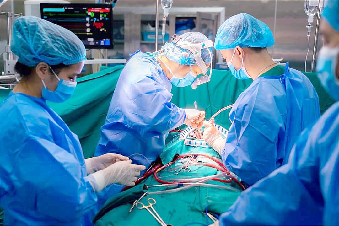 Các y bác sĩ đang thực hiện 1 ca can thiệp động mạch vành phức tạp